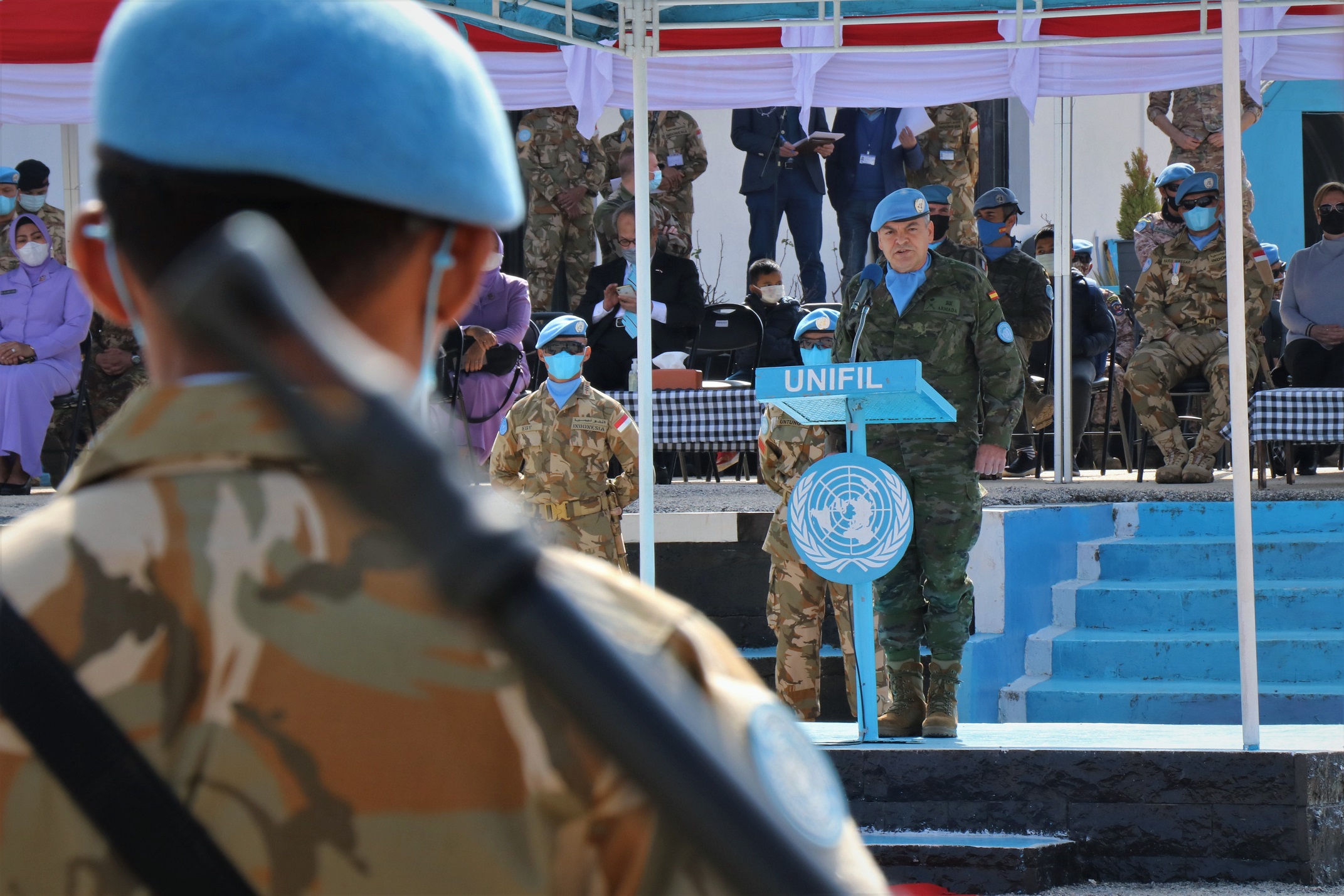 خلال خطابه ، أعرب الجنرال رامون أرمادا فاسكيز ، قائد القطاع الشرقي في اليونيفيل ، عن تقديره الكبير للاحتراف الكبير والجهود التي بذلتها الكتيبة INDOBATT المنتهية ولايتها في ضمان السلام والاستقرار في جنوب لبنان. كما هنأها على فترة عملها الناجحة وقدم أطيب التمنيات للكتيبة بالنجاح في مهامها المستقبلية.