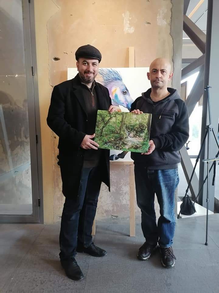 كما قدم المصور ضومط سنجب لوحة لرئيس الملتقى محمد علوش وقدم التشكيلي اندريه كالفيان لوحة خاصة لمنسقة المعرض بسكال مسعود .