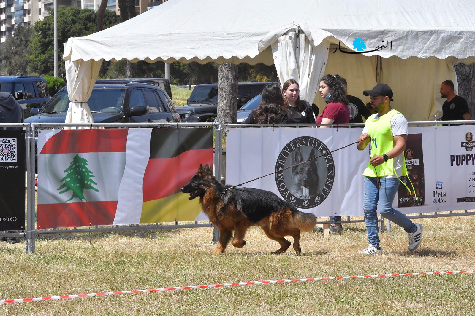 الكلب الفائز بالمرتبة الأولى (بعدسة الزميل نبيل إسماعيل).