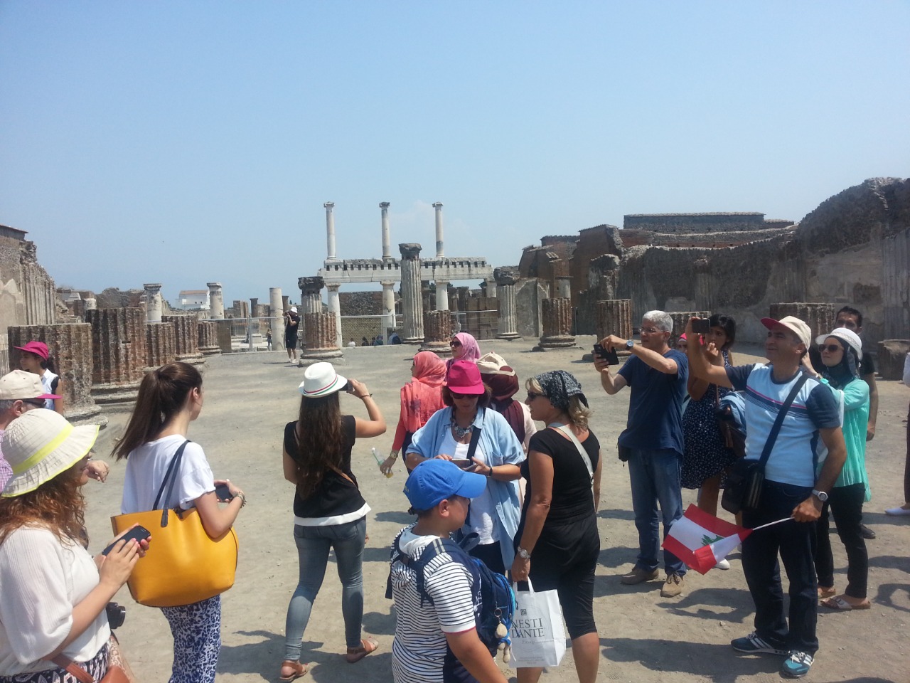 زرنا المدينة التاريخيّة "بومباي" التي هدمها الزلزال "فيزوف" في الجبل المحاذي لها، الذي حوّلها إلى أطلال بسكانها وحيواناتها وأشيائها، شاهدنا بعضاً من آثار هذا الحدث كالولد المتحجّر والكلب المنقبض على نفسه وأدوات الفخار والأواني المستخرجة من تحت الأنقاض والمعروضة ليتبيّنها الزائرون، وكان يرافقنا دائماً دليل يشرح لنا ويُفسّر الأحداث.