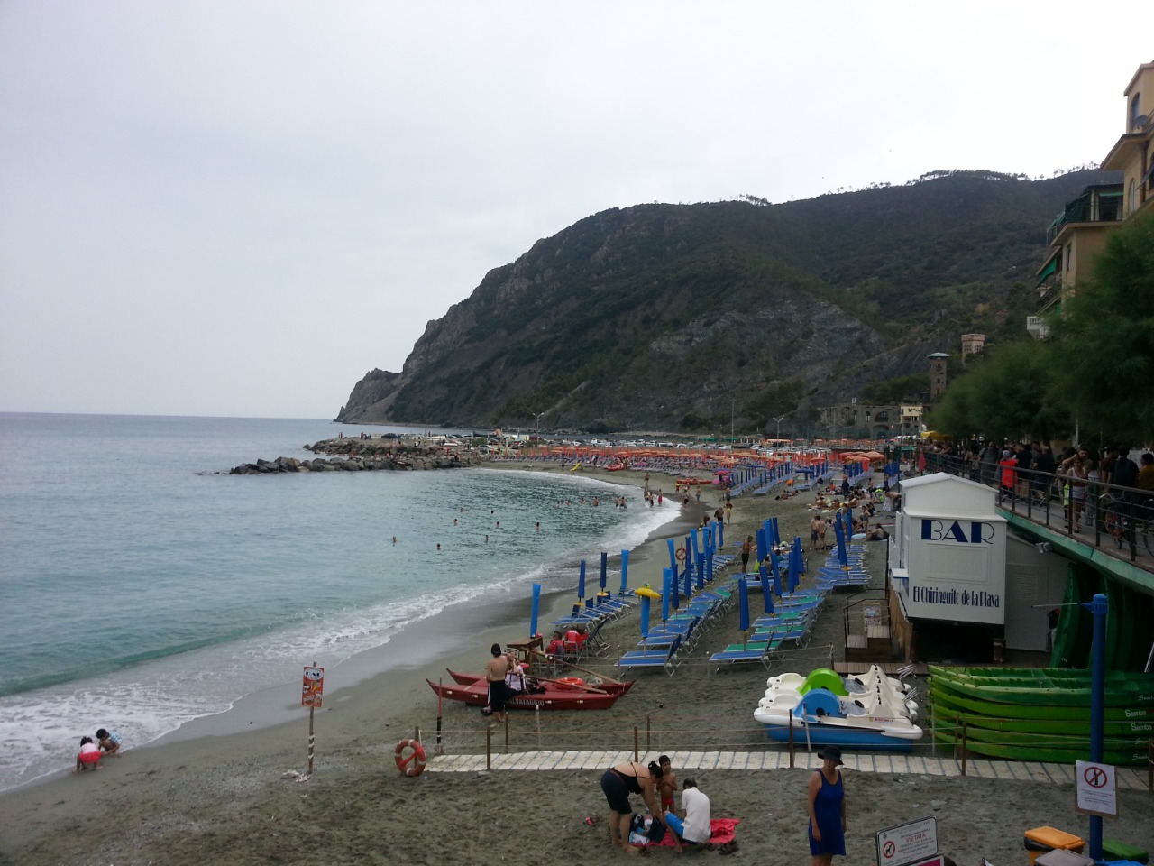 في اليوم الثالث كانت زيارتنا لمنطقة تُسمّى الأراضي الخمسة "شينكوي تيرّي"، اقتصرت الزيارة على رؤية ركن صغير جداً من هذه الأراضي وهو ركن إمتاز بجماله الطبيعيّ والجغرافيّ على شاطىء البحر ولون شاطئه الذي تميل حصاه إلى الرماديّ. حينها أخذت السماء تلقي بمخزونها من الأمطار، صدّقنا حينها ما قِيل لنا أنّ الطقس في إيطاليا متقلب جداً يميل إلى الصحو ثم الأمطار بشكل مفاجىء! إلا أنّ هذا الطقس لم يمنع روّاد السباحة من التمتّع بعذوبة المياه، الذين اعتادوا على ما أظنّ على مزاجيّة السماء في هذا الركن من العالم.