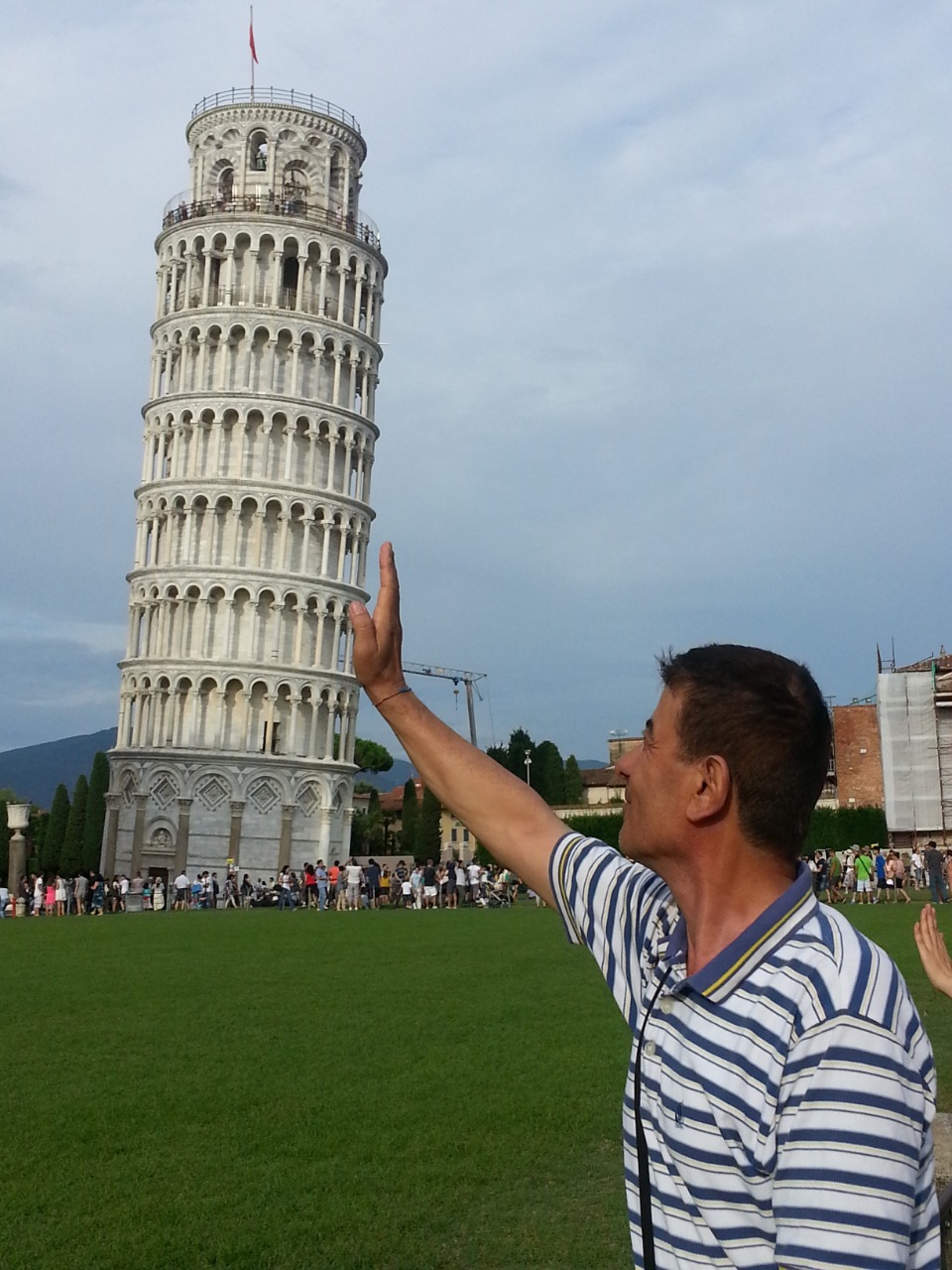 المحطة التالية كانت زيارة برج "بيزا" الشهير المائل الذي تحس عند رؤيتك له أنه سيسقط على المتفرجين الكثر الذين يتحلقون حوله لأخذ الصور، أو كأنه يقوم بتحيّتهم عبر إنحناءة احترام منه للجموع المحتشدة التي أجرت بعض السيناريوهات أو الخدع البصريّة عبر التقاط الصور مع البرج أو بمحاذاته محاولين منعه من السقوط عبر تشكيل اليدين عن بعد بوضعية الداعم له، كما فعل كاتب هذه الكلمات ناشراً الصور على صفحة التواصل الاجتماعيّ.