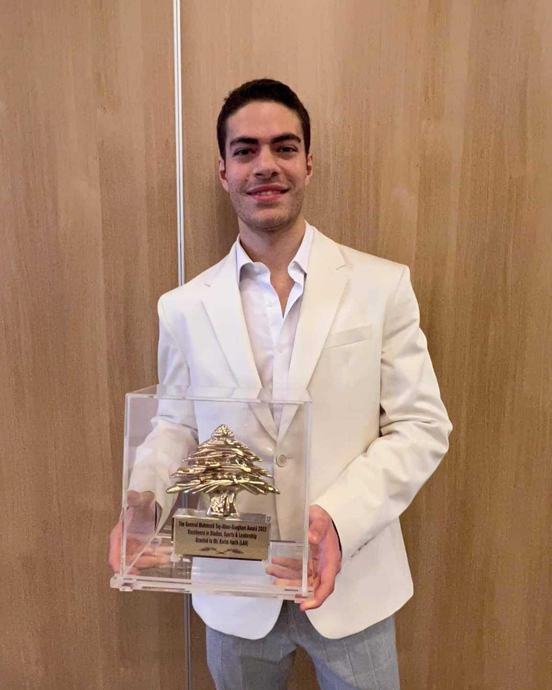 تسلم الطالب المتفوق كريم مروان حريق، جائزة اللواء الركن محمود طي ابو ضرغم للتميز في الدراسة والرياضة والصفات القيادية في الجامعة اللبنانية الاميركية “LAU، في حضور ولدي اللواء الراحل ابو ضرغم نبيل ورلى، طلال الخليل ومسؤولين عن الطلاب والتنمية في الجامعة.