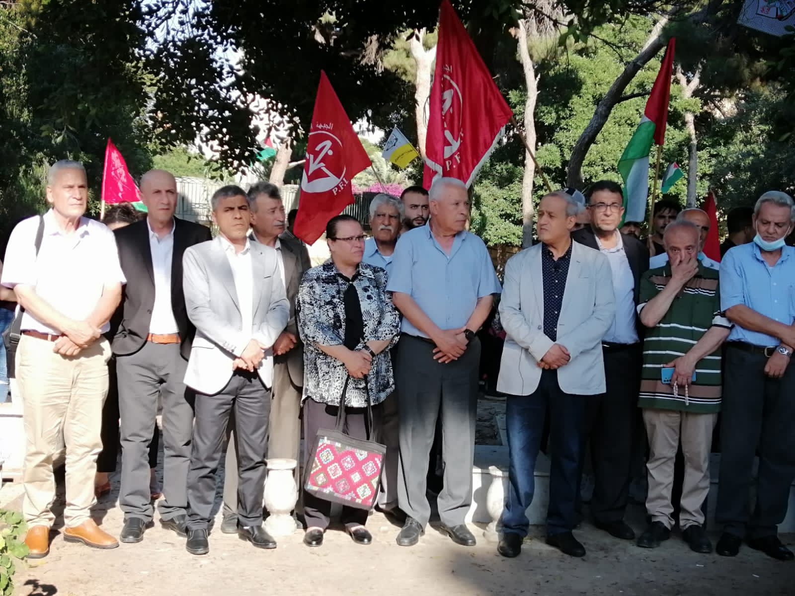 ومن ثم انتقل الوفد والحضور إلى النصب التذكاري لشهداء الثورة الفلسطينية، وتم وضع إكليل من الزهر عليه، باسم الأمين العام للجبهة الرفيق القائد احمد سعدات، وكما تم وضع إكليل من الزهر على ضريح الشهيد الأديب غسان كنفاني، كما زار الوفد والحضور أضرحة شهداء الثورة الفلسطيية، وشهداء تل الزعتر، وشهداء صبرا وشاتيلا، والقائد ابو ماهر اليماني وماهر اليماني.