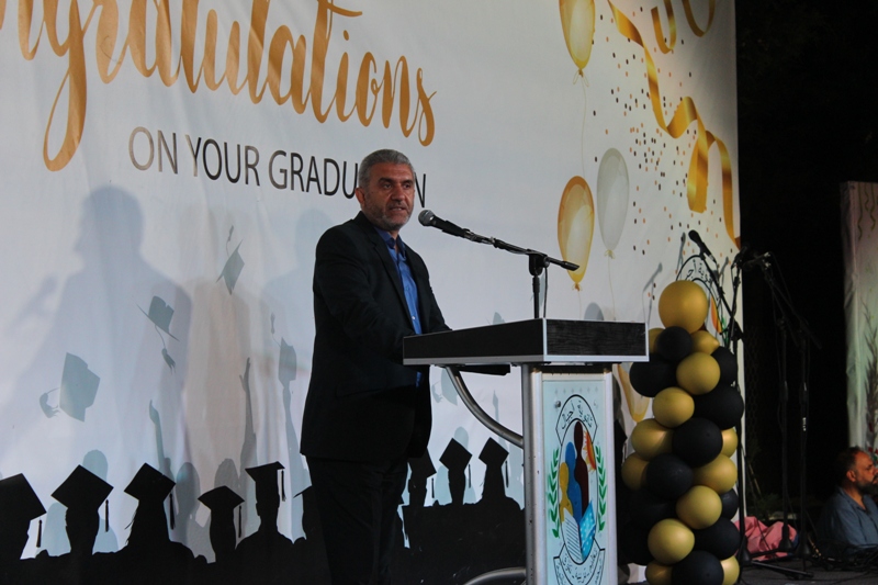 بعد دخول موكب الطلاب، ثم النشيد الوطني افتتاحا، ألقى مدير الثانوية داود حرب كلمة قال فيها: "لا بد لي اولا من التوجه الى المحتفى بهم، أبنائي، أبناء أجيال، يا من قضيتم في هذا الصرح التعليمي سنوات عمركم، سنشتاق لكم، لكننا متأكدون من نجاحكم دائما في أي مسار تختارونه، بما زرعته أجيال فيكم من صفات ومهارات وعلوم، وما زرعه معلموكم ومربو صفوفكم من التفاني في الدرس والعمل والتضحية هذا أولاً، ومتأكدون من نجاحكم دائماً لانكم تستحقون، نعم أنتم جيلٌ يستحق النجاح، جيل واجه وسيواجه مصاعب اقتصادية واجتماعية كبيرة، لكنه سينجح، لانه جيل يستحق الحياة".