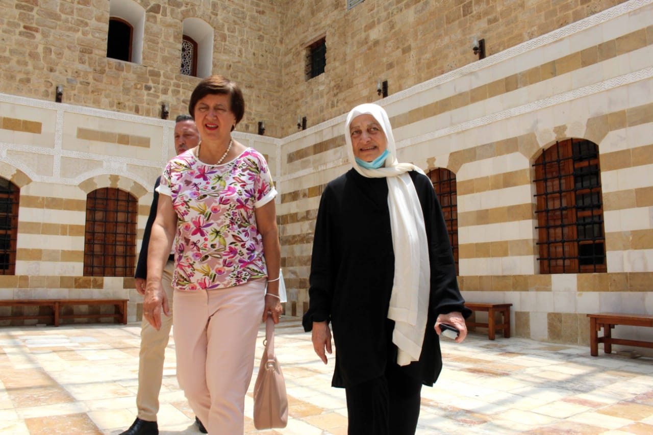 مع بداية القرن التاسع عشر أصبح القصر وقفاً لجمعية المقاصد الخيرية الإسلامية في صيدا، التي اتّخذته مقراً لمدرسة عائشة أم المؤمنين. وبعد انتقال المدرسة إلى مكان آخر في بناء جديد وحديث خارج صيدا القديمة، سكنت القصر عائلات مهجّرة طوال فترة الحرب الأهليّة، ثم أخلي من المهجّرين بعد انتهاء الحرب، ليبدأ التفكير جدّياً في عمليّة ترميمه، وأطلقت «مؤسسة الحريري» فيه أواخر التسعينيّات «بيت المختبر» لتعليم عدد من أبناء المدينة القديمة وطلاب الجامعات تقنيّات الترميم. بعد ذلك، قامت مؤسّسة الحريري، بناء على عقد وقّع في العام 1997 مع جمعية المقاصد في صيدا، بورشة ترميم شاملة وإعادة تأهيل للمبنى، حيث عمل فريق متخصّص في العمارة العربية الإسلامية على إعادة المبنى إلى وضعه الأساسيّ من الناحية الأثرية، وحافظت ورشة الترميم في المبنى على التراث المنقوش والمحفور وأعادته إليه رونقه.