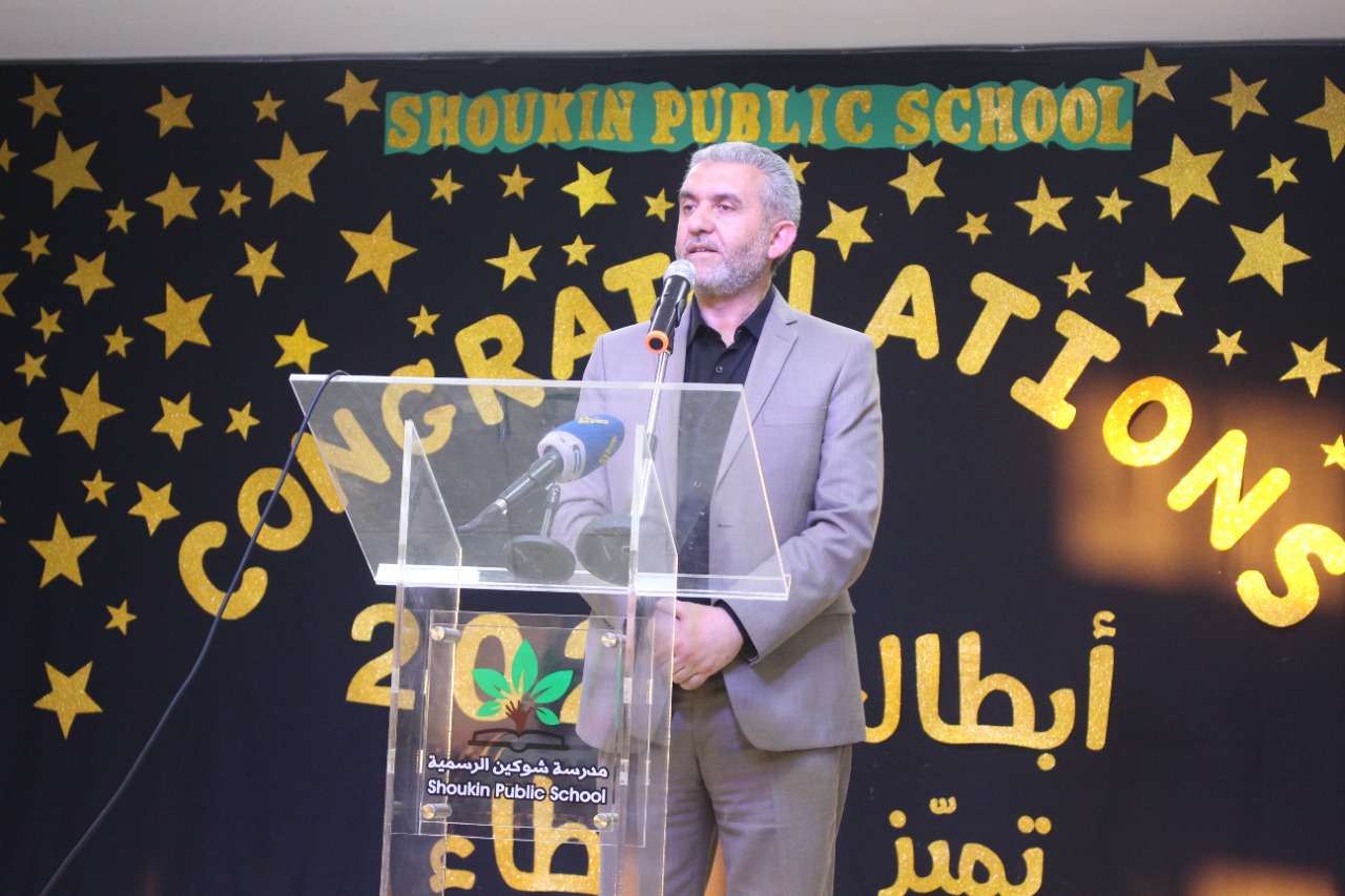 بعد النشيد الوطني افتتاحا، ثم قدم طلاب المدرسة مشهديّة تحاكي المعاناة في بلدنا بعنوان "يا رايح صوب بلادي"، أبطالها مجموعة من التلامذة الخرّيجين من كتابة سيناريو وتدريب المعلّمة سلوى جعارة، ثم ألقيت كلمات باسم الطلاب المتخرجين، وكانت كلمة لقاسم زريق باسم ذووي الطلاب المتخرجين ، تلاه كلمة مديرة المدرسة نسرين شعيب اعتبرت فيها "هذا اليوم هو عرسٌ في مدرسة شوكين الرّسميّة إحتفاءً بالنتائج المتميّزة والمراتب الأولى التي حصدها طلابنا في الإمتحانات الرسمية على مستوى الوطن، خاصة انها اتت بعد اكثر من عامين على الأزمات المتتالية التي كادت تقضي على التربية والتعليم".
