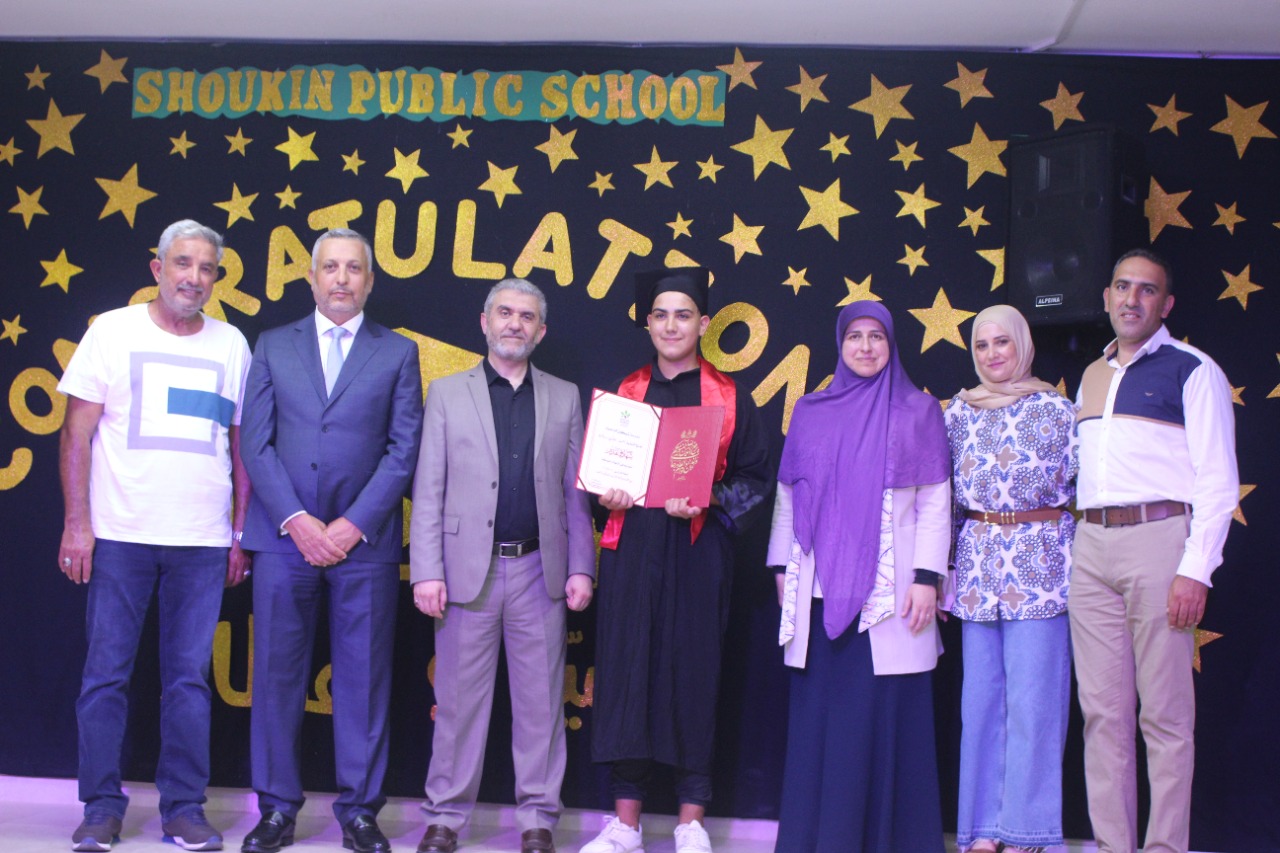 ثم قدمت شعيب درعا تقديريا للوزير بيرم، ثم سلما الدروع التكريمية لأساتذة صفّ التاسع في المدرسة تقديراً لجهودهم التي أثمرت نتائج مميّزة، وكذلك تمّ توزيع شهادات التقدير على الخرّيجين.