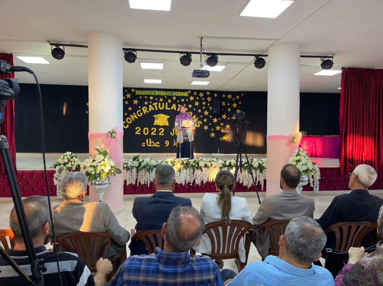 وتوجّهت إلى الخريجين: "أوصيكم وانتم تغادرون مدرستنا اليوم ان تكملوا طريق العلم، ولا تجعلوا أي ظرف يوقفُ مسيرتكم، فالعلم ينير العقول ويطرد منها الجهلَ والتعصّب، ويفتح امامكم دروب الحياة.. واسعَوا أن تتخصّصوا باختصاصات مفيدة لمجتمعكم..وعندما تتخرّجون بإذن الله من جامعاتكم، لا تنسوا ان تكونوا إنسانيين في أي مجال ستخوضون فيه غمار عملكم..اطباء كنتم او مهندسين..أساتذة او محامين..أصحاب مهن حرة او إداريين..او في أي مجال من المجالات..أتقنوا عملكم، فإنّ الله يحبّ اذا عمل أحدكم عملاً ان يتقنه.. وعاملوا الناس بالرحمة واخدموهم على قدر استطاعتكم، ولا تنسوا ان افضل عبادة هي خدمة الناس".