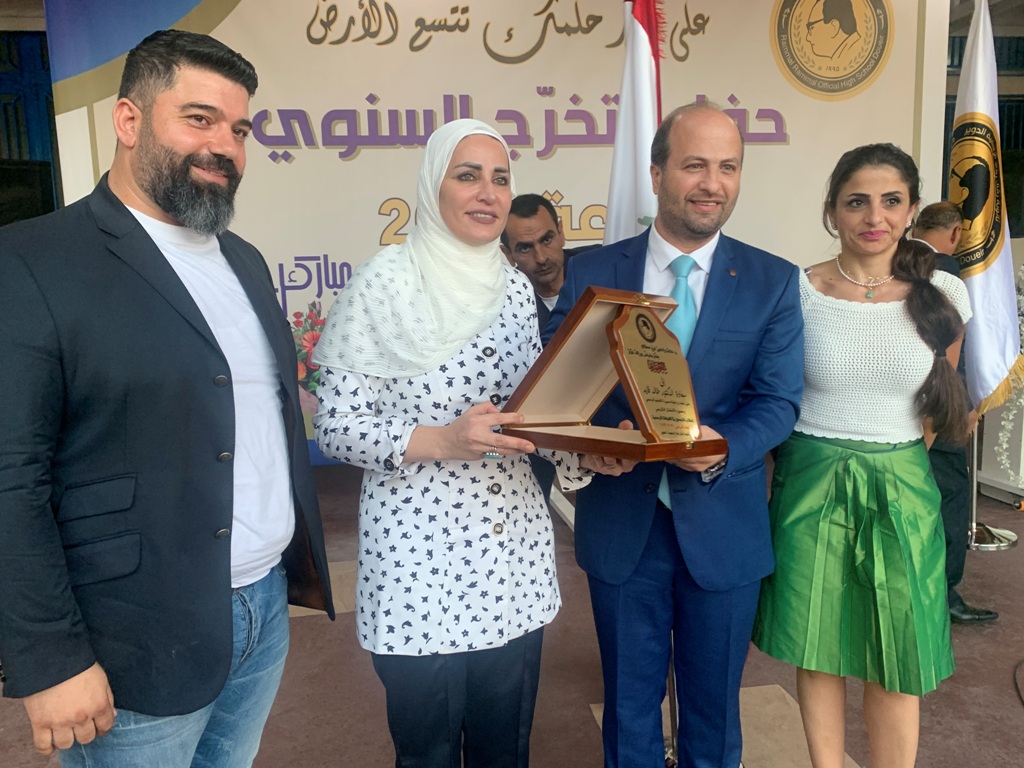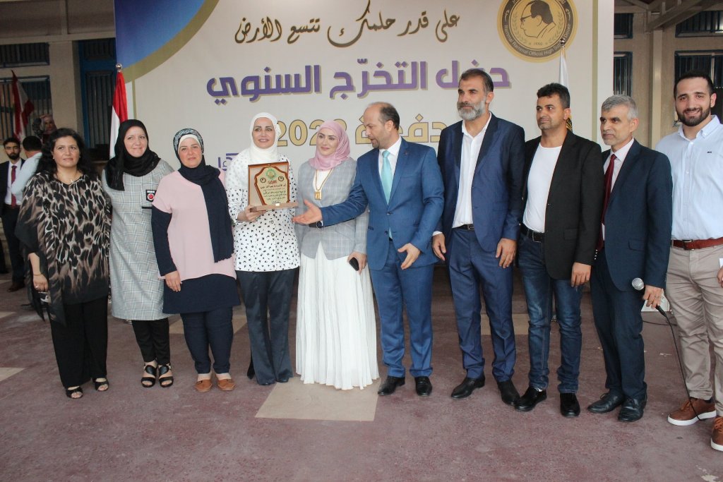 وفي ختام الحفل قدمت مديرة الثانوية نعم جوني للدكتور خالد فايد درعا تقديريا عربون وفاء وتقدير لجهوده . كما تم تقديم درع تكريمي لمديرة الثانوية تقديرا لجهودها من قبل الهيئة التعليمية ثم جرى توزيع شهادات تقديرية على الطلاب المكرمين والمتفوقين.