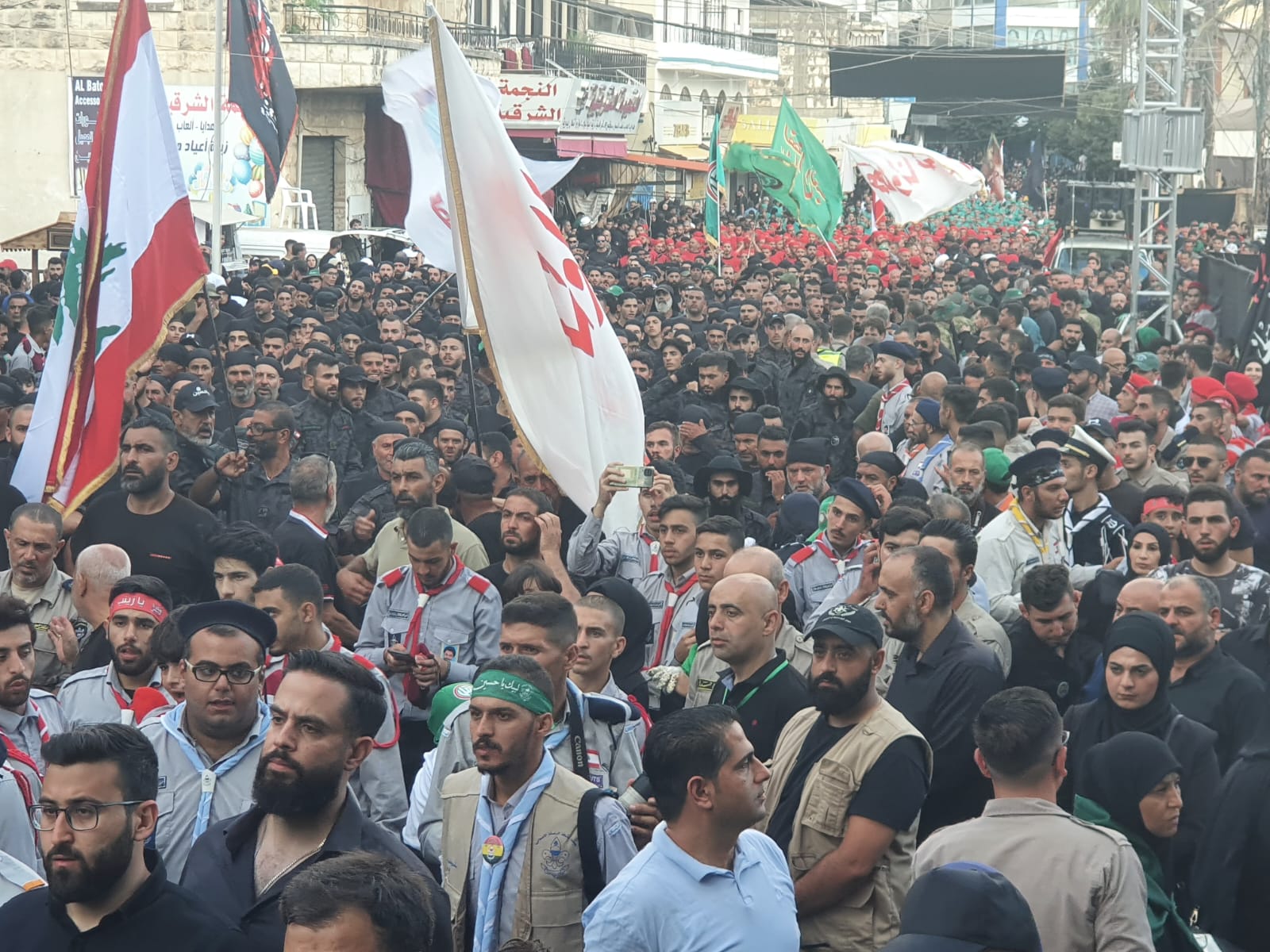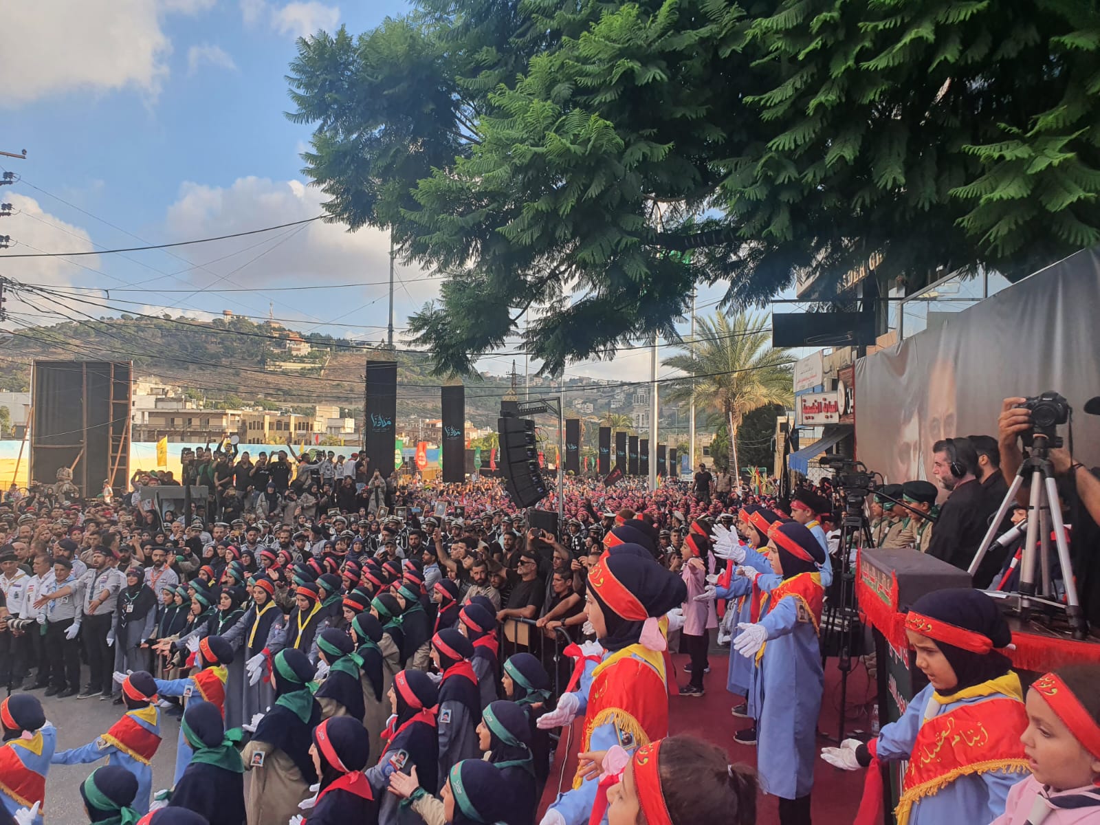 المسيرة انطلقت من أمام دوار المنشية في المدينة يتقدمها فرق رمزية من قادة الأفواج الكشفية والجوالة في كشافة الرسالة الاسلامية والمرشدات والدليلات والزهرات وعناصر من جمعية الرسالة للاسعاف الصحي والمسعفين والمسعفات في الجمعية وحملة الرايات الحسينية والاعلام اللبنانية وحركة امل وكشافة الرسالة الاسلامية والمجسمات العاشورائية ثم امهات الشهداء ومكتب شؤون المرأة في الحركة ثم فرق اللطيمة الذين ارتدوا زيا يجسد علم افواج المقاومة اللبنانية أمل بحضور