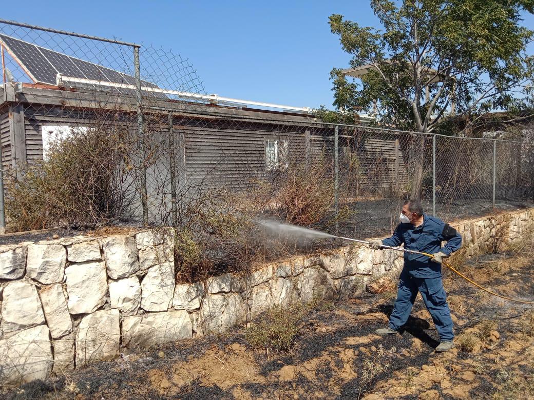 اخمد عناصر الدفاع المدني من مركز جديدة مرجعيون حريق أعشاب و بعض أشجار الزيتون و تضرر خيمة من الخشب والنايلون في خراج بلدة القليعة قضاء مرجعيون .