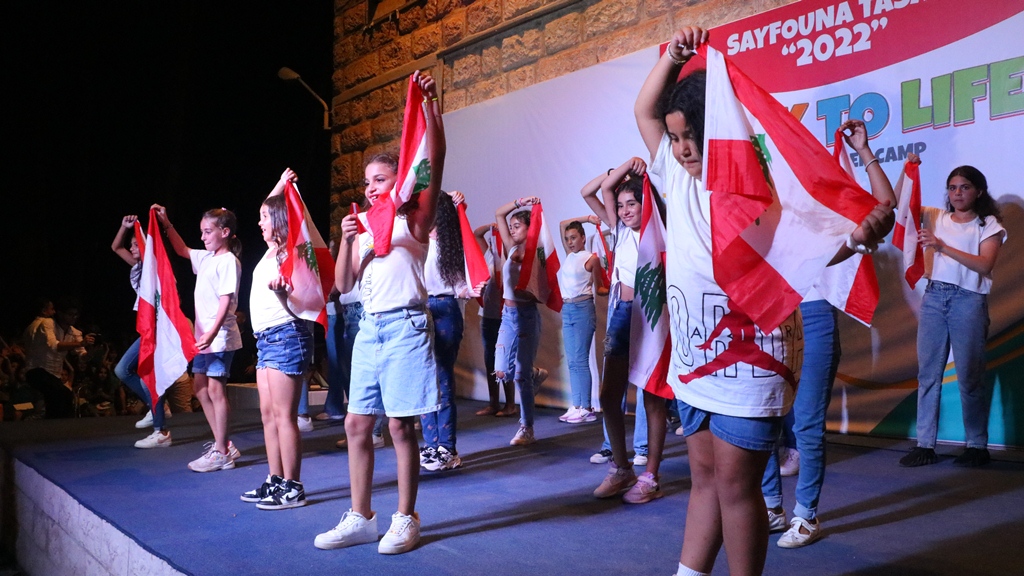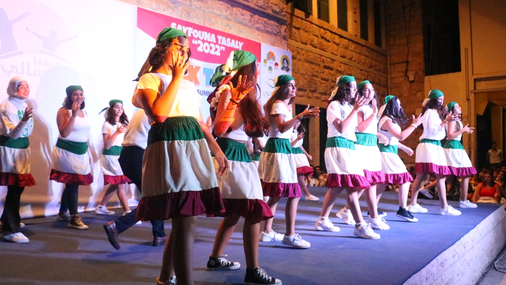 ثم قدمت طالبات الكولوني لوحة فنية بعنوان "بيكفي إنك لبناني".