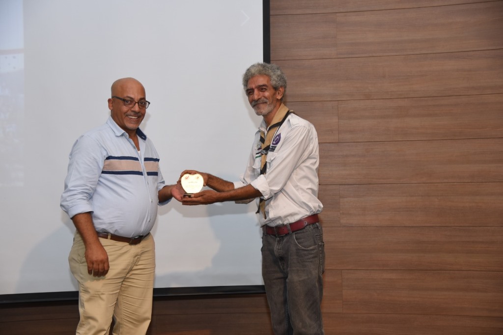 قام بعدها فريق العمل بمفاجأة مدير الهيئة الإدارية أثناء القاء كلمته، حيث قدموا له درعا تكريميا، كما كرّم الفريق الاستاذ جمال هندواي قائد فريق كشافة يعبد.