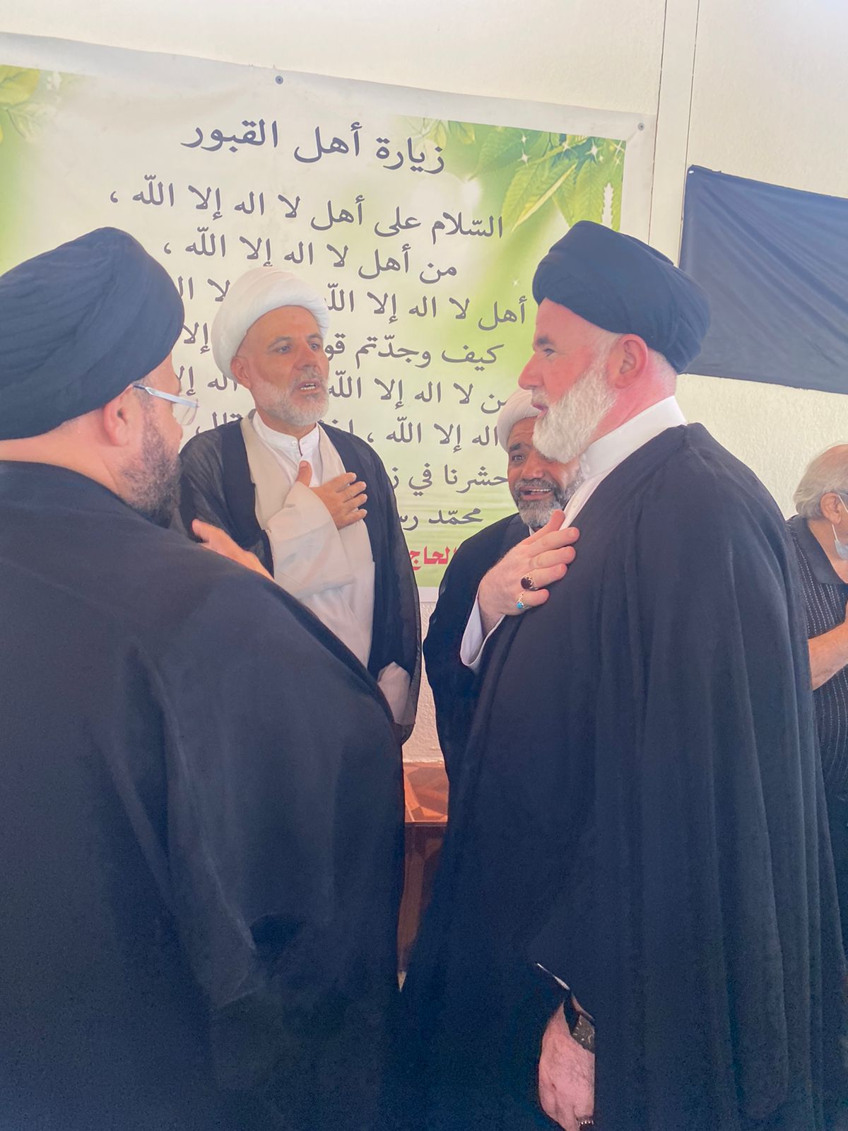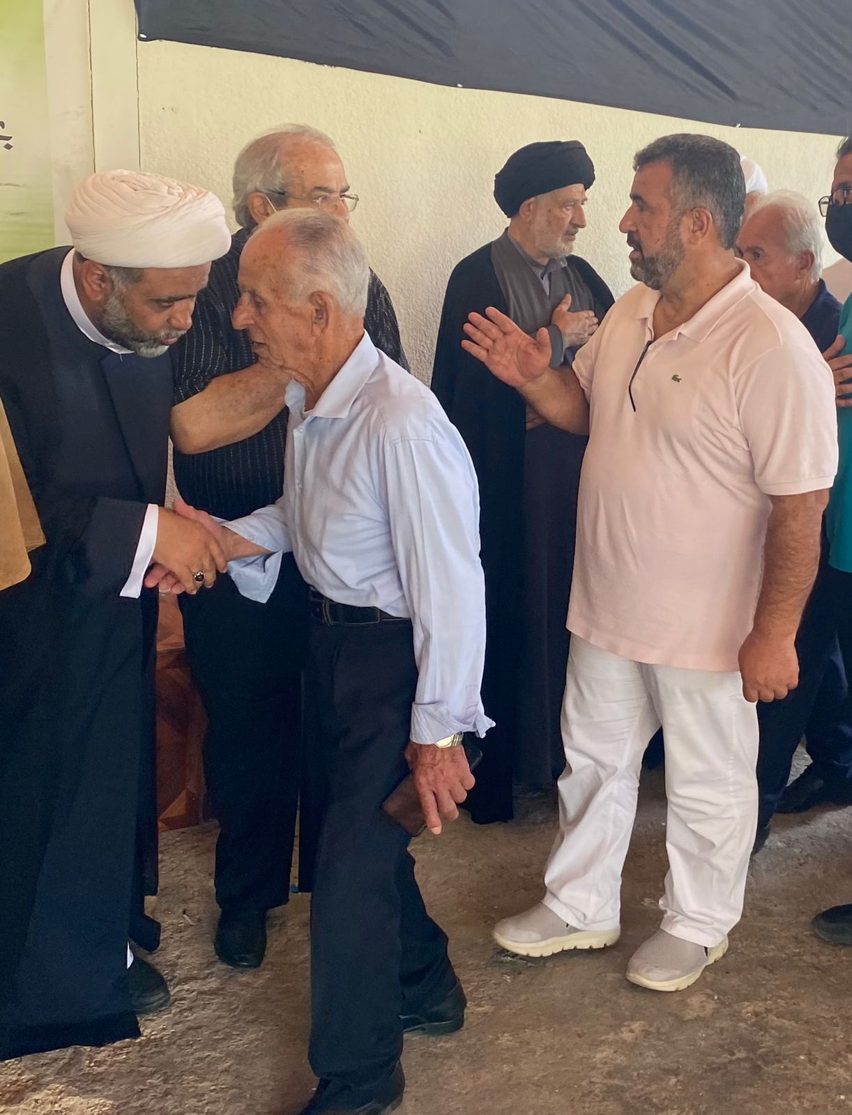 قام سعادة نائب دائرة مرجعيون – حاصبيا الحاج "علي حسن خليل" والوفد المرافق له عصر يوم السبت (03 أيلول 2022م) بأداء واجب العزاء والمواساة بوفاة المرحومة الحاجة "شمّا محمد خليل الحاج علي عبدالله" (أم علي) (1938 – 2022م) شقيقة مفتي مرجعيون – حاصبيا، إمام مدينة الخيام، سماحة "الشيخ عبدالحسين عبدالله"، وذلك في منزل المفتي بمدينة الخيام، حيث كان في استقبال سعادته والوفد المرافق له، فضيلة الشيخ محمد باقر عبدالحسين عبدالله (نجل سماحة المفتي) وثلة من الأهل والأقارب الذين غصت بهم الدار.