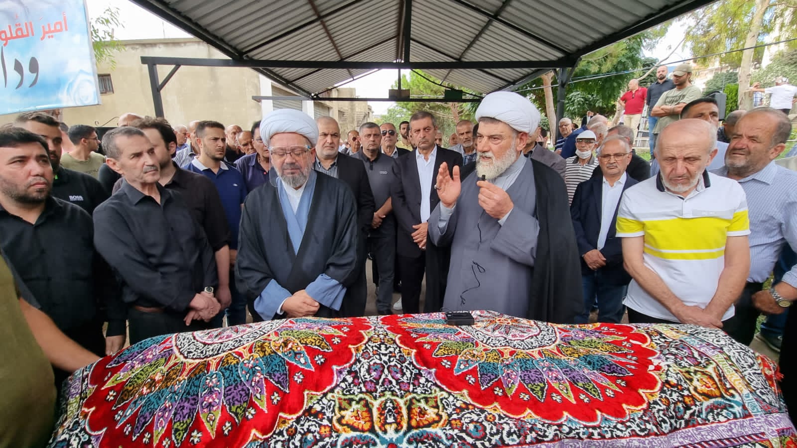 أم الصلاة على الجثمان الشيخ محمد جواد شمس الدين قبل أن يوارى في الثرى في روضة البلدة.