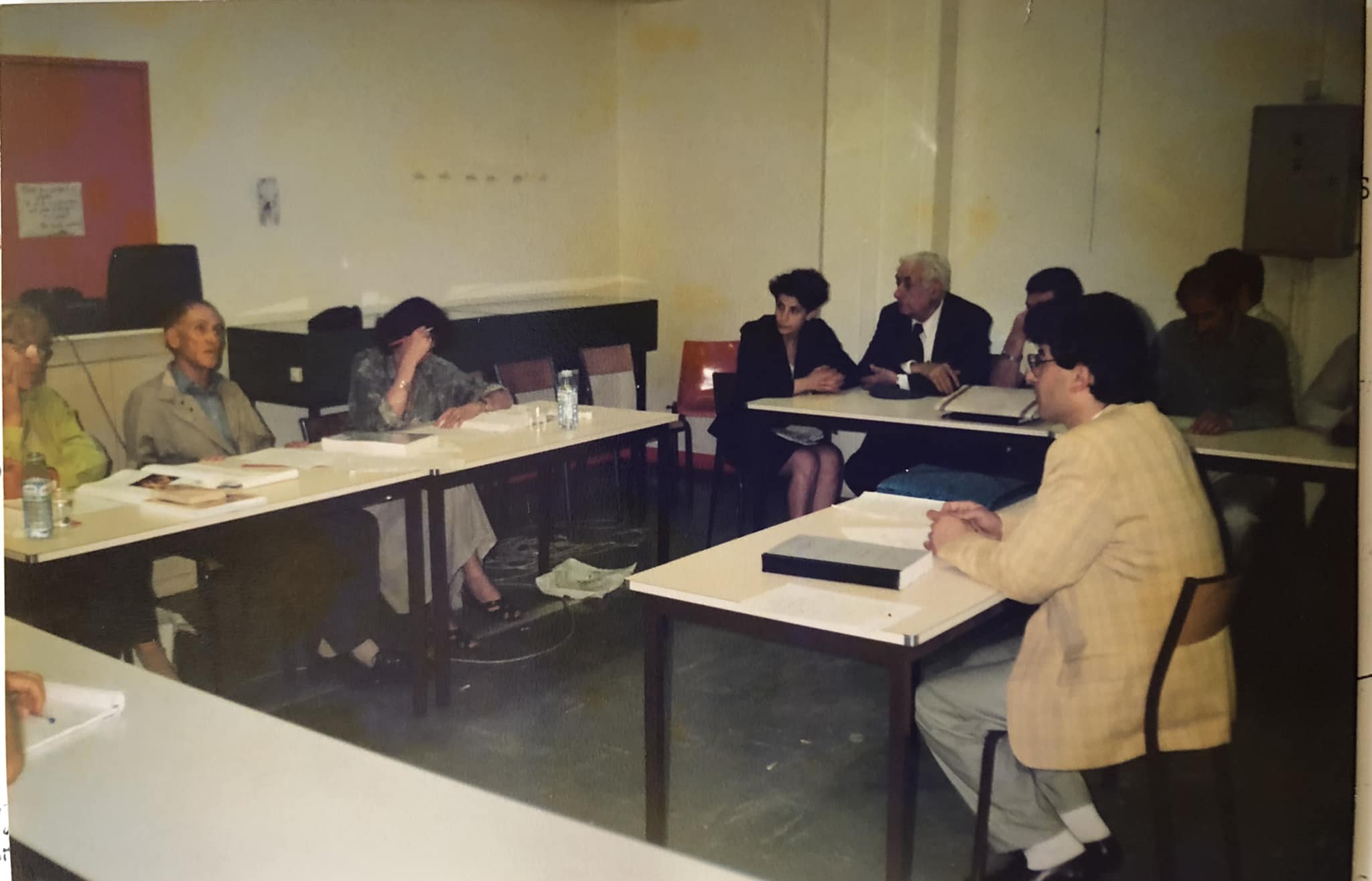 أُلتقطت هذه الصورة عام 1992، أثناء مناقشتي للدكتوراه في باريس، وقد ظهر في الخلفيّة الفنان الكبير صليبا الدويهي برفقة رفيقة دربه الكريمة، مصغيان للمناقشة بإمعان.