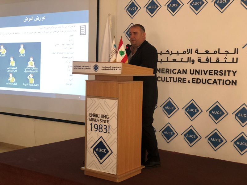 نظمت الجامعة الأميركية للثقافة والتعليم (AUCE) - فرع النبطية بالتعاون مع وزارة الصحة العامة ، ندوة توعوية مع طبيب القضاء في محافظة النبطية الدكتور بشار شميساني وذلك بعنوان " الكوليرا، مسبباتها، وكيفية الوقاية منها، وعن وباء كورونا واهمية اللقاحات بتمنيع المجتمع" وذلك بحضور مدير فرع النبطية الدكتور حسين النابلسي ، وممثل عن مصلحة الطب الوقائي في وزارة، وافراد من الهيئتين التعليمية والادارية في الجامعة والطلاب، وجرى نقاش وتفاعل حول الموضوع.