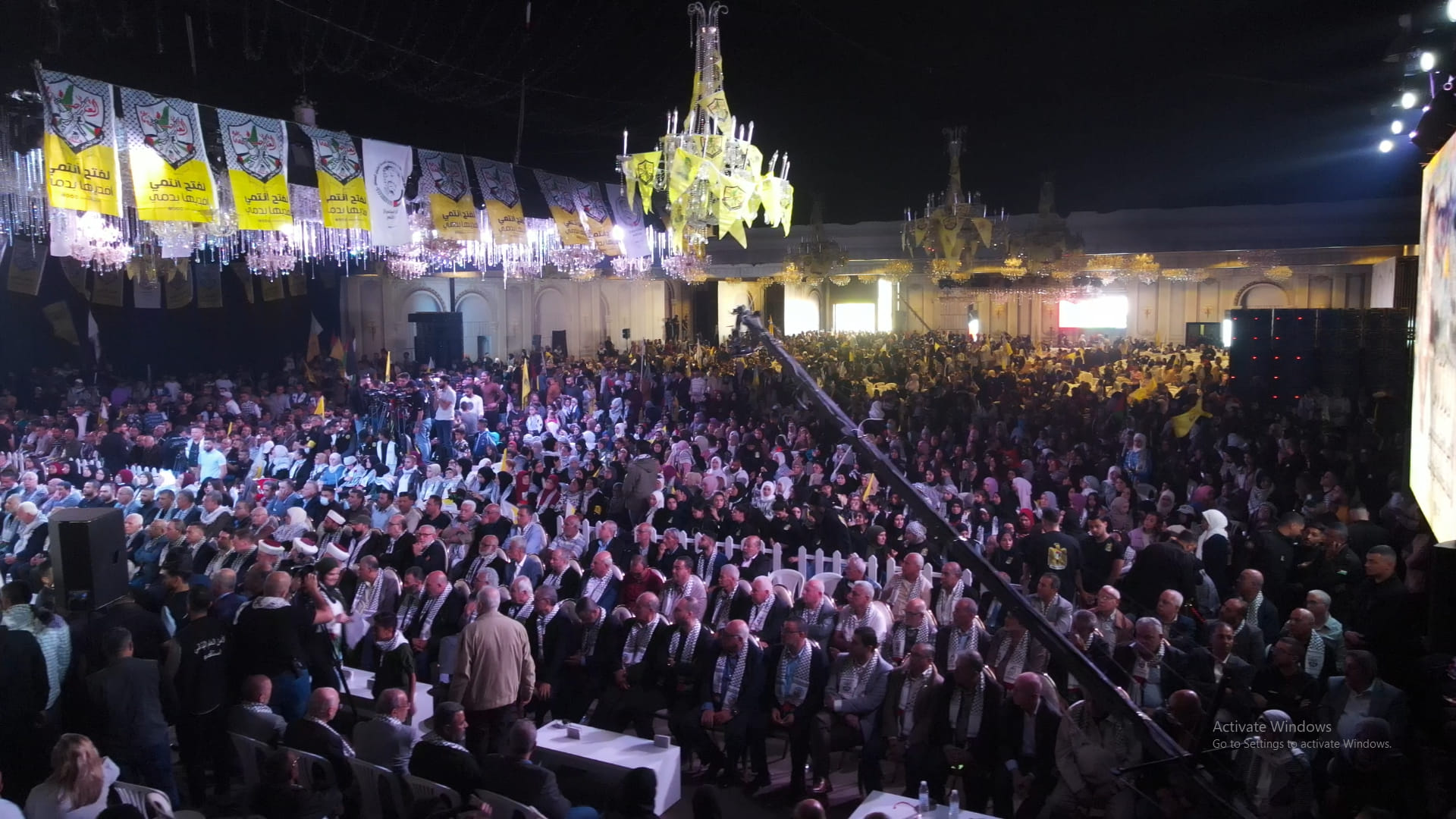 المهرجان المركزي الذي دعت إليه قيادة منظمة التحرير الفلسطينية وحركة التحرير الوطني الفلسطيني "فتح" عجَّت الصالة فيه بالآلاف من المشاركين، حيث بقي الآلاف الآخرون يتابعون المهرجان من خارج القاعة التي لم تتسع لهذه الحشود التي أتت للوفاء لمسيرة الختيار.