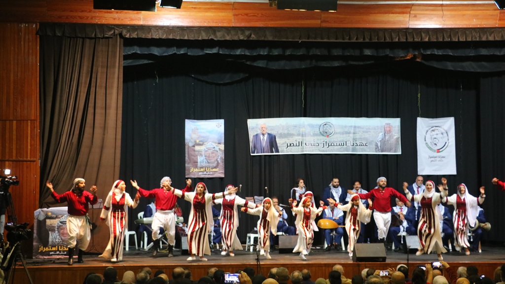 وقدمت فرقة حنين باقة من الأغاني الوطنية والتراثية الفلسطينة التي حيّت من خلالها الشهبد الرمز ياسر عرفات وشهداء وأسرى الثورة الفلسطينية، كما قدّم الفنان وليد سعد الدين قصيدة بمشهد مسرحي تحية إلى روح الشهيد أبوعمار,