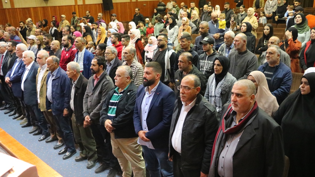 افتتح الحفل بالنشيدين اللبناني والفلسطيني ونشيد حركة فتح، ثم رحب أمين سر الاتحاد العام للفنانين الفلسطينيين محمد عيد رمضان بالحضور وطلب الوقوف دقيقة صمت وقراءة الفاتحة على أرواح ضحايا حريق جباليا في غزة، وإلى كل الشهاداء وعلى رأسهم سيد الشهداء ياسر عرفات.