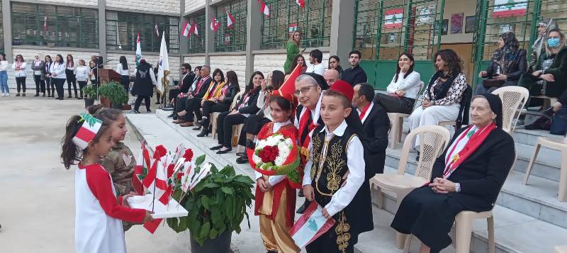 بعدها كلمة لرئيسة الثانوية لوسي عاقلة، فقالت: وطني، في عيدك اليوم، لن أكرّر حكاية الاستقلال التي تعلمناها منذ الصغر، بل أنحني أمام عظمة رجالات ضحّوا بأنفسهم من أجل أن تبقى أنت وطن الأرز والشموخ.