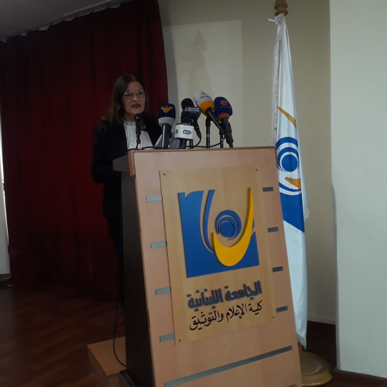 والقت الدكتورة العبدالله كلمة، رأت فيها انه "في هذه الأوقات اللبنانية والعالمية المضطربة يبقى هذا اللقاء كسابقه انتصارا جديدا على اليأس وشعلة نور في العتمة الرمادية. بعد 8 سنوات من العمل البحثي الفريقي تحت مظلة شبكتنا العلمية، علينا أن نتوقف من جديد ونفكر في دوافع جديدة تتكيف مع عالم مزدحم بالأزمات والحروب على أنواعها. لقد أصبح التواصل بالوسائط الرقمية عنصرا مركزيا في الحياة الجماعية ومعيارًا حيويًا وحاسما لتحديد مصير البشرية جمعاء. وقد طرأت، جراء ذلك، على مجالنا البحثي الحديث مواضيع ومحاور وإشكاليات جديدة مرتبطة بالاتصال والحوكمة السياسية، والمواطنة الديموقراطية والتشاركية والوظيفة الرمزية الاجتماعية لوسائل الاعلام والاتصال الحديثة لا سيما في أوقات الحروب والأزمات. من هنا اخترنا لملتقانا الثامن عنوانا يعبر عن الواقع الراهن وأهم رهانته وهو استراتيجيات الإعلام والاتصال في الحروب الراهنة من الحرب الناعمة إلى المواجهة العسكرية".