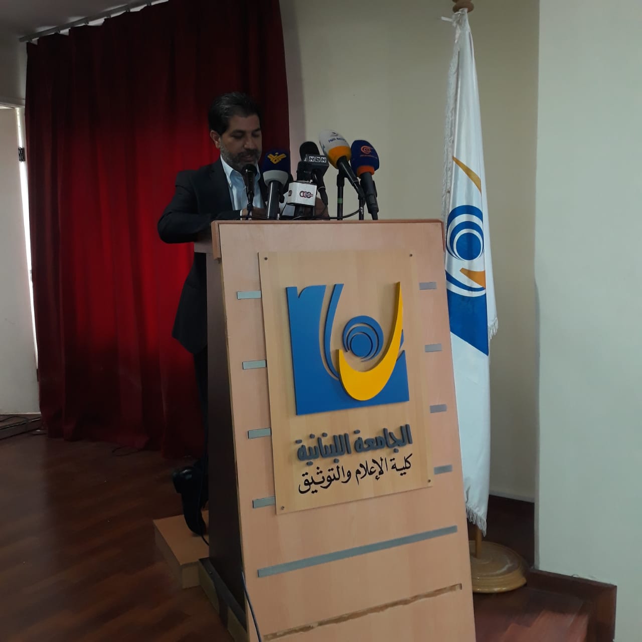 ثم تحدث البروفسور بدران، فقال: "يسعدني ان ارحب بكم في الجامعة اللبنانية وفي واحدة من كلياتها المتميزة، كلية الاعلام والتوثيق التي لعبت وما تزال ادوارا هامة لخدمة وطننا ومجتمعنا من خلال شبكة واسعة من اساتذة ومتخرجين صحافيين واعلاميين. كما ارحب بالضيوف الكرام الباحثين الحاضرين والمتابعين عبر وسائل التواصل واخص ببالذكر الرابطة العربية للبحث العلمي وعلوم التواصل التي حققت بالتعاون مع اساتذتنا وباحثينا هذه التظاهرة العلمية البحثية".