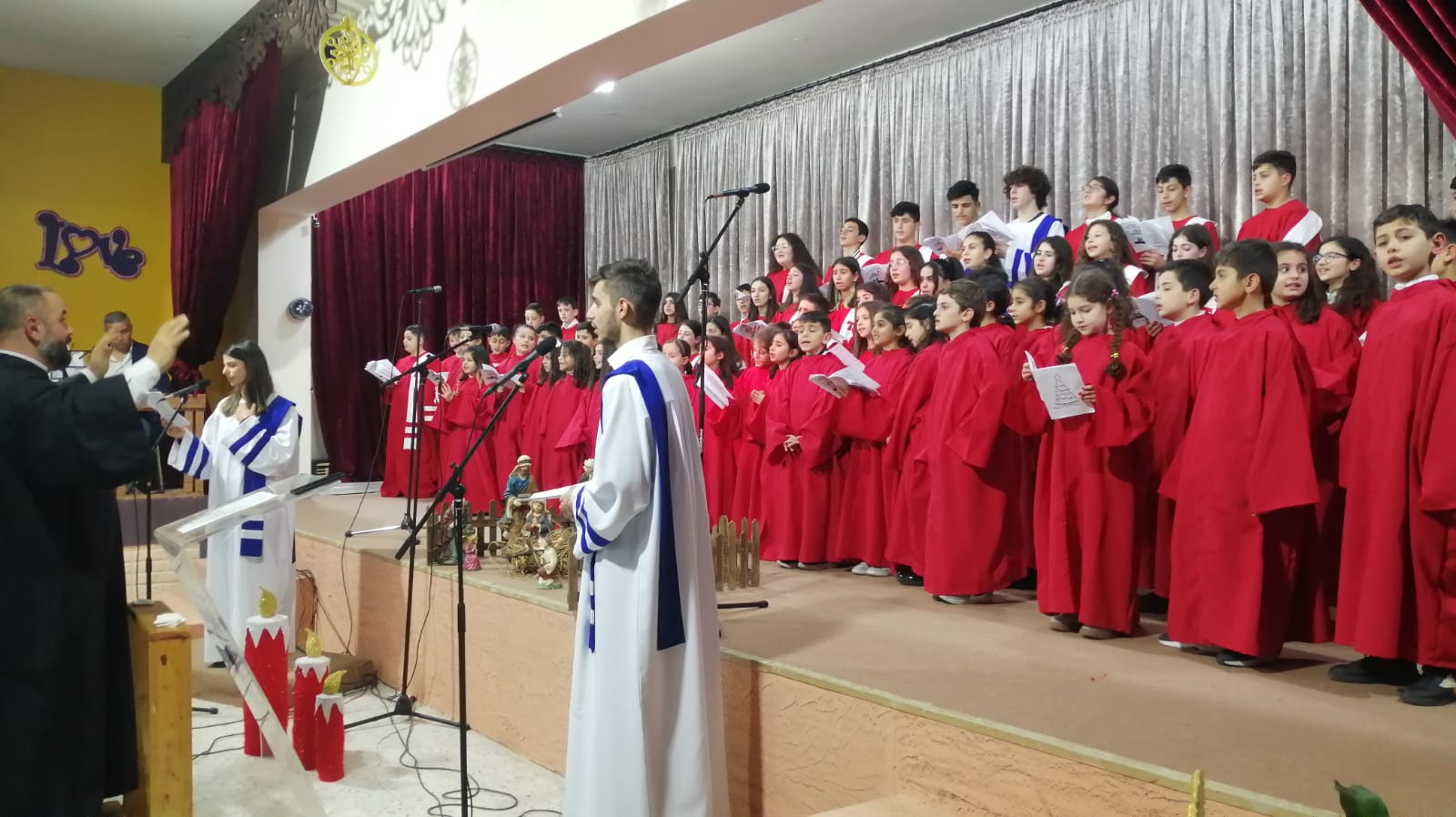 وأكد الأب نصر أن "ولادة الطفل يسوع ومريم العذراء غيّرا وجه البشرية وردّا البسمة والفرحة للبشرية جمعاء، وهذه هي الرسالة الأولى لميلاد الرب يسوع من مريم العذراء، رسالة الفرح، ونحن فرحون بأولادنا وببعضنا البعض، وفرحتنا أكبر بوجود هذا التنوع بين طلابنا، الذين يصلّون ويفرحون مع بعضهم البعض".