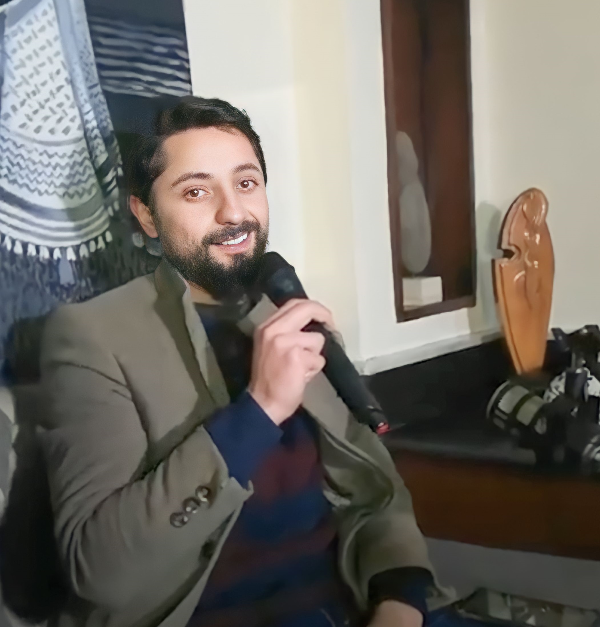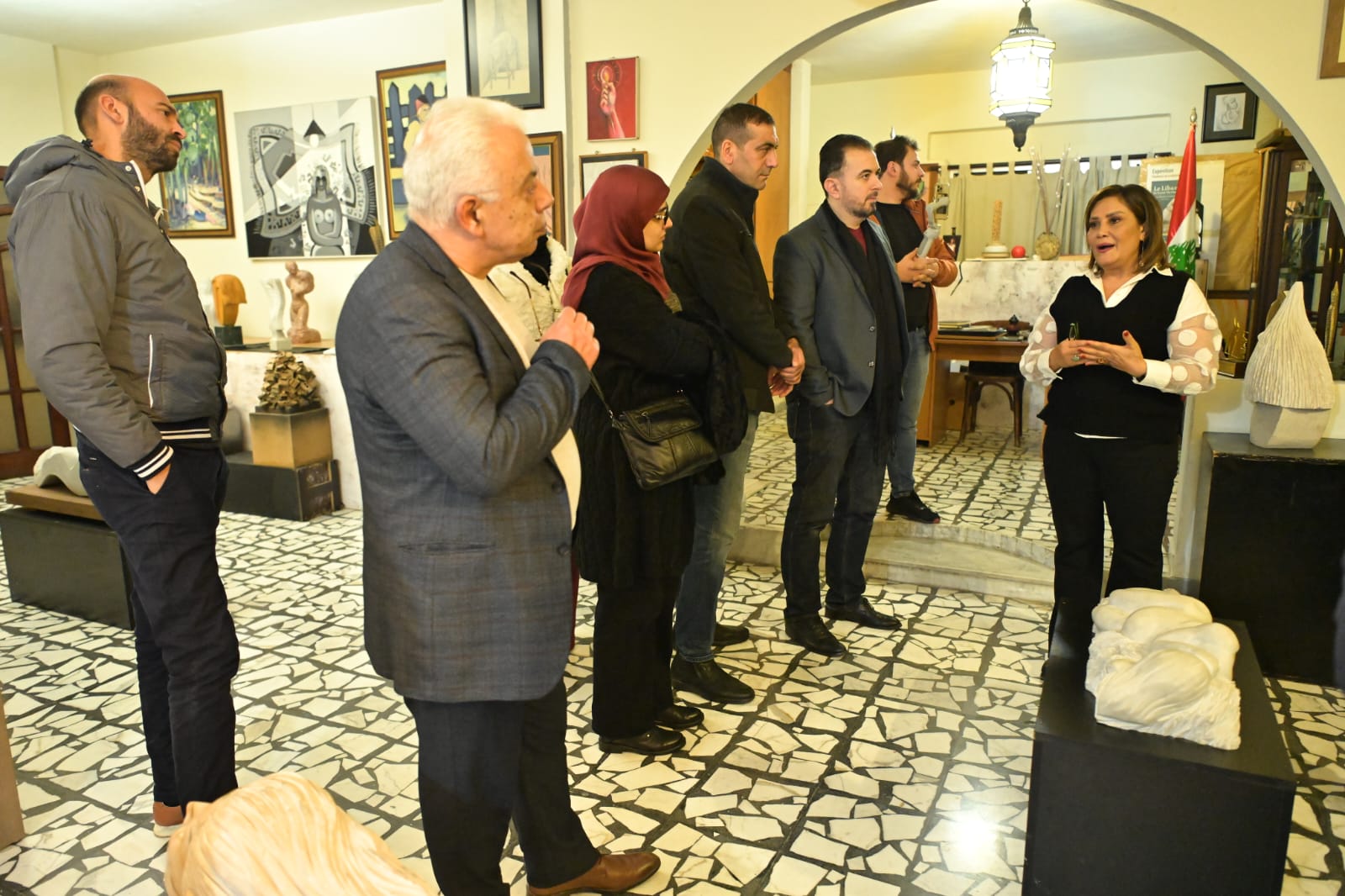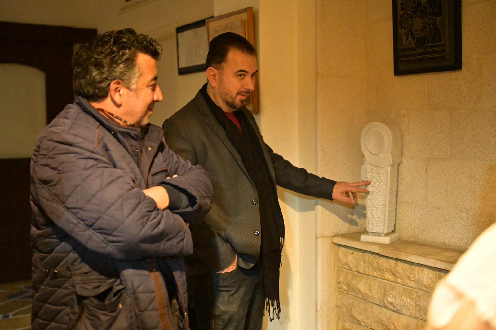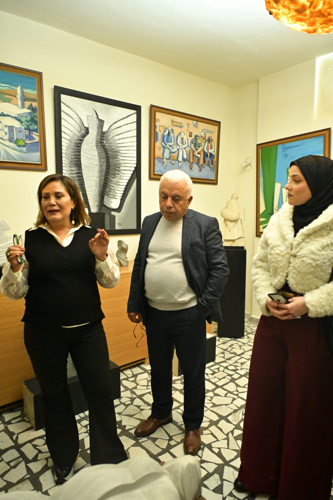 بداية اللقاء كانت مع جولة للوفد على أرجاء المتحف وبعدها كانت كلمة ترحيبية من الاستاذ علوش أشار فيها الى القيمة الفنية والثقافية التي يمثلها متحف الفنان مزهر وأهمية تماهي الفنون مع بعضها البعض بحيث اليوم تقرأ القصائد على مسامع المنحوتات الناطقة والمنصتة أزليا الى صوت الفن والإبداع.