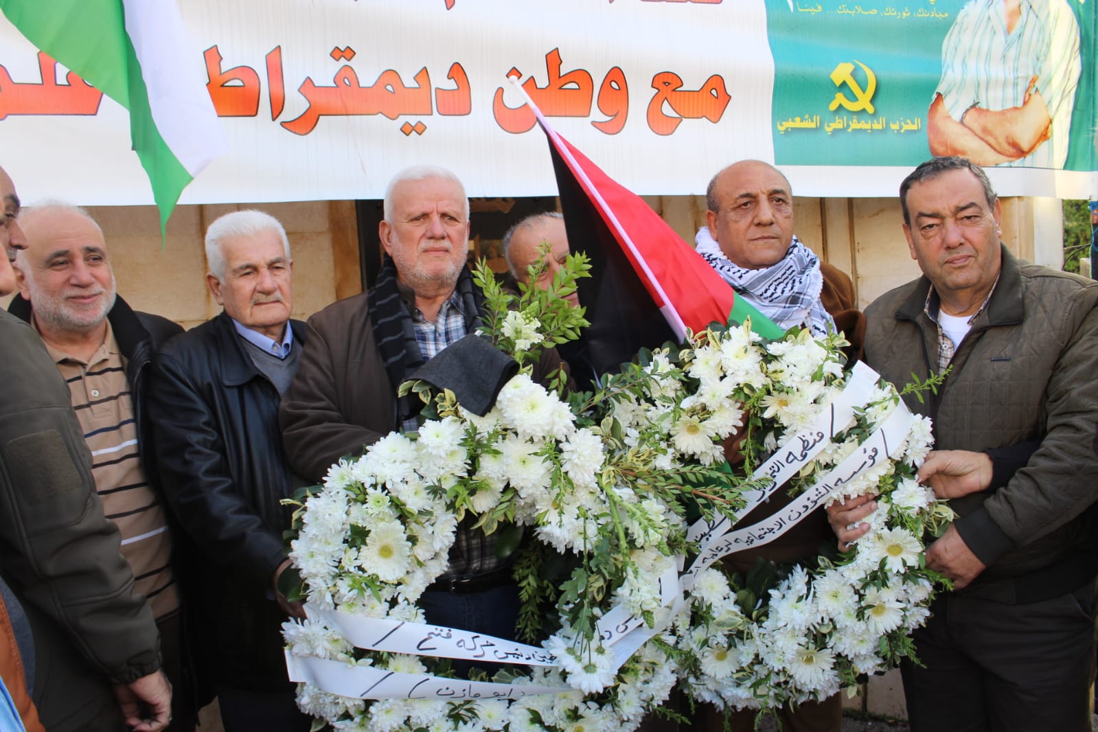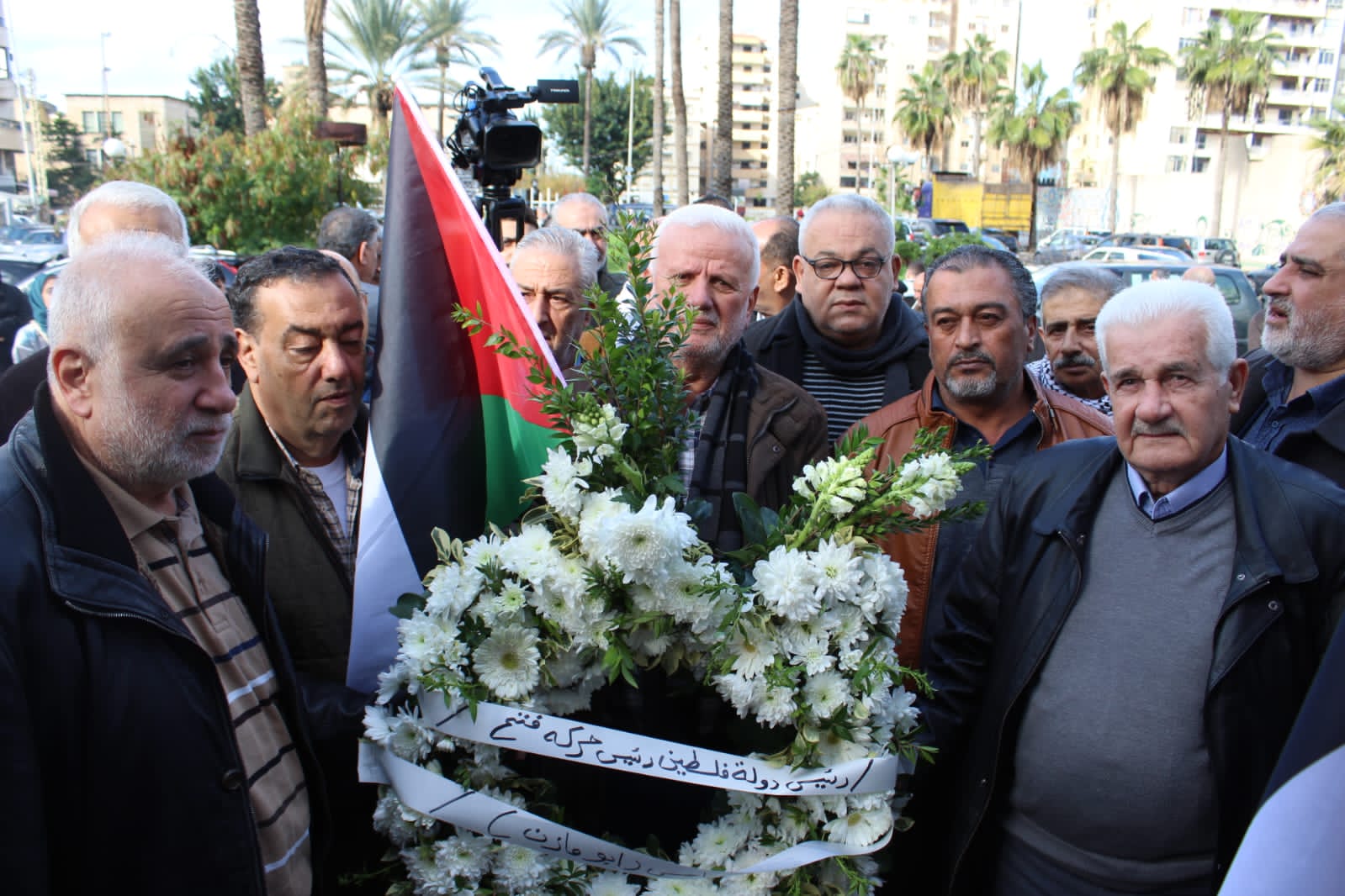 وتقدّم الحضور أمين سر حركة "فتح" وفصائل منظمة التحرير الفلسطينية في لبنان اللواء فتحي أبو العردات، أمين سر حركة "فتح" - إقليم لبنان حسين فيّاض وأعضاء قيادة حركة "فتح" - إقليم لبنان: آمال شهابي وزهرة الربيع ومحمود سعيد ومنعم عوض، وأمين سر حركة "فتح" وفصائل "م.ت.ف" في منطقة صيدا اللواء ماهر شبايطة وأعضاء قيادة المنطقة، إلى جانب ممثلي فصائل منظمة التحرير الفلسطينية، وأمين سر حركة "فتح" - شُعبة صيدا مصطفى اللحام وأعضاء قيادة الشعبة وكوادر حركة "فتح" في الشعبة وأمين سر حركة "فتح" - شُعبة الميّة وميّة غالب الدنان، وأمين سر الاتحاد العام للفنانين الفلسطينيين في لبنان محمد الشولي، وأمين سر الاتحاد العام لنقابات عمال فلسطين غسان البقاعي على رأس وفد الاتحاد، وأمين سر المكتب الكشفي الحركي في إقليم لبنان خالد عوض، وأمين سر المكتب الطلابي الحركي في إقليم لبنان نزيه شما، وقائد القوة المشتركة في مخيم عين الحلوة عبد الهادي الأسدي، ووفد من الجمعية الفلسطينية لقدامى اللاعبين الرياضيين "قُدامى لاعبي غزة"، وممثلين عن قوى التحالف الفلسطيني، والاتحادات والمنظمات الشعبية والمكاتب الحركية في منطقة صيدا، بالإضافة لحشد شعبي كبير.