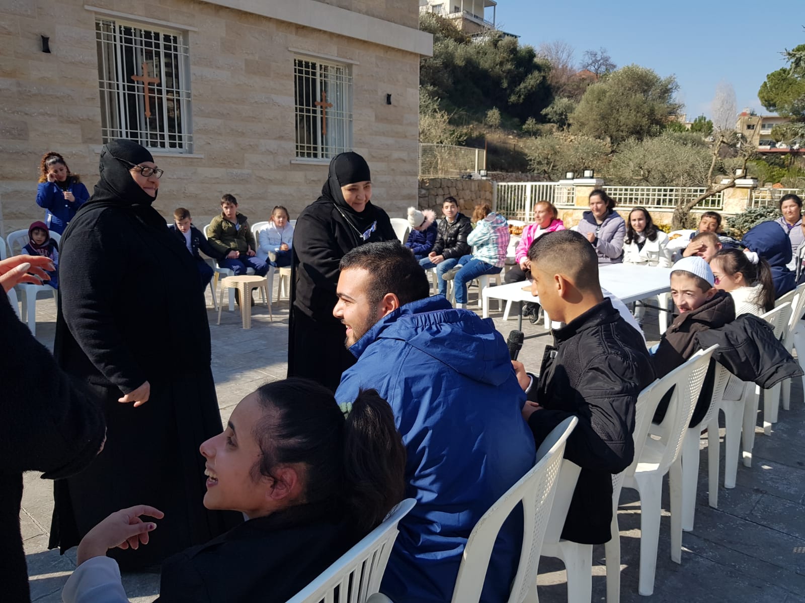 َكان في استقبال وفد دار الأيتام الإسلامية مسؤولة الدير الأخت ستيفاني وعدد من الأخوات المقيمات في الدير.