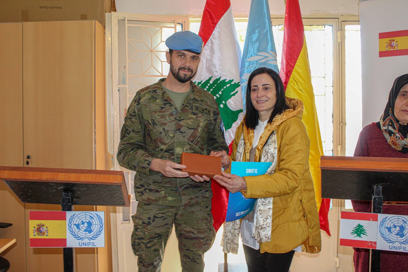 من جهتها، تقدمت السيدة مصطفى بالشكر من الكتيبة الاسبانية على المساعدة التي قدمتها، و التي لها أهمية كبرى نظرا للأزمة التي يمر بها لبنان، و تمنت أن يستمر هذا النوع من المساعدات.