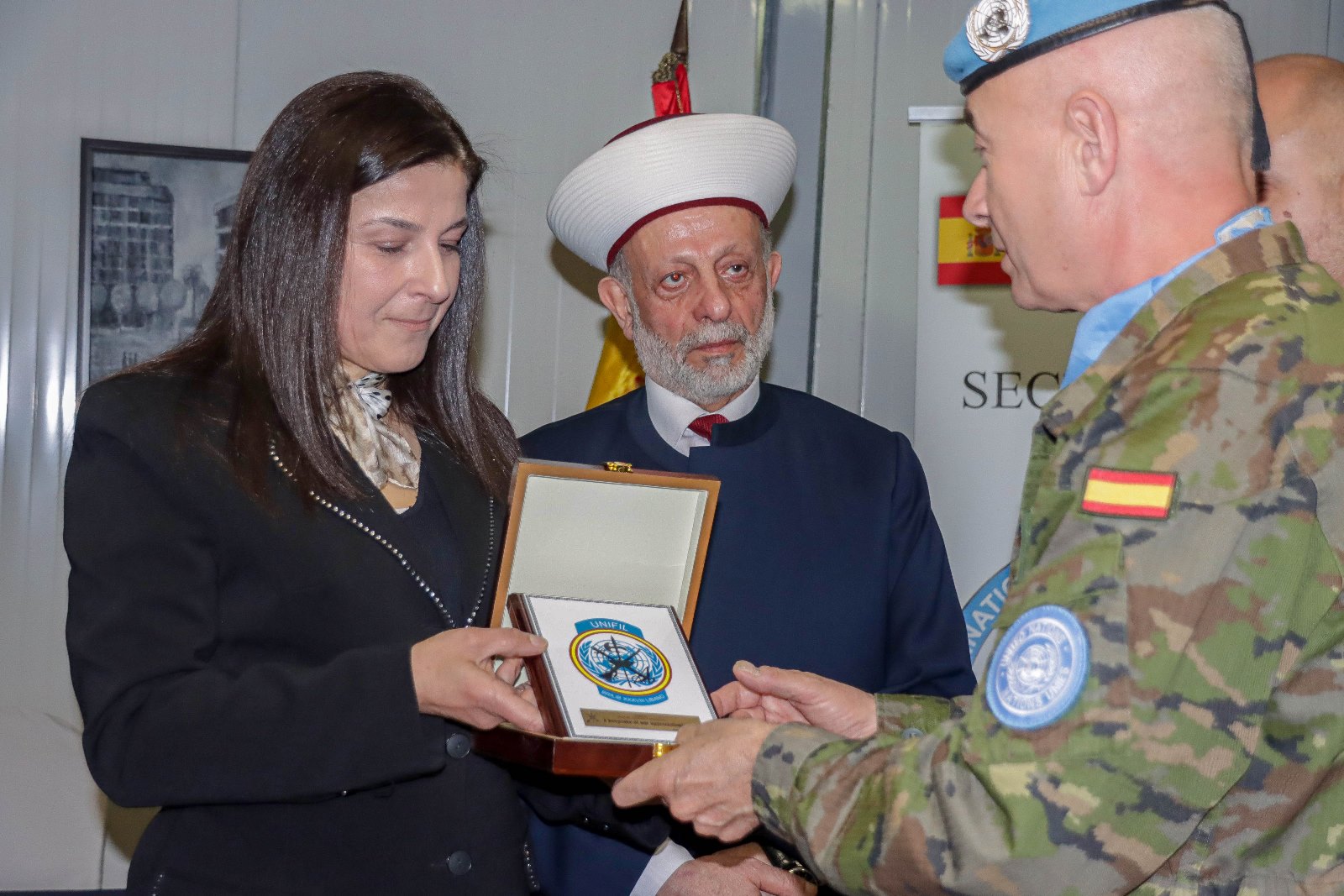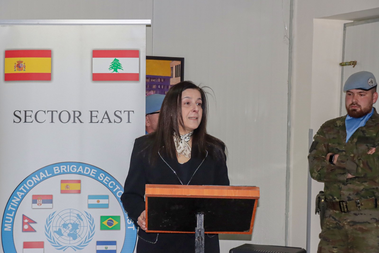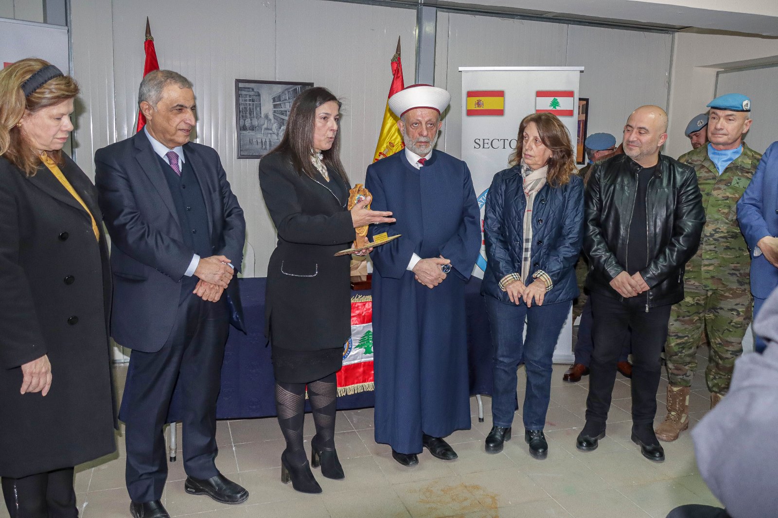 نوهت الانسة لينا أبو كرنيب في كلمتها جهود الكتيبة الإسبانية، وقالت: "بالإضافة إلى مهمتهم العسكرية ومشاريعهم التنموية ، جلبوا معهم اللطف والمشاعر الإنسانية العميقة. كما بذلوا قصارى جهدهم لإرساء الأمن والاستقرار ودعم أبناء جنوب لبنان صحياً واجتماعياً وثقافياً، هم أيضا جنودنا".
