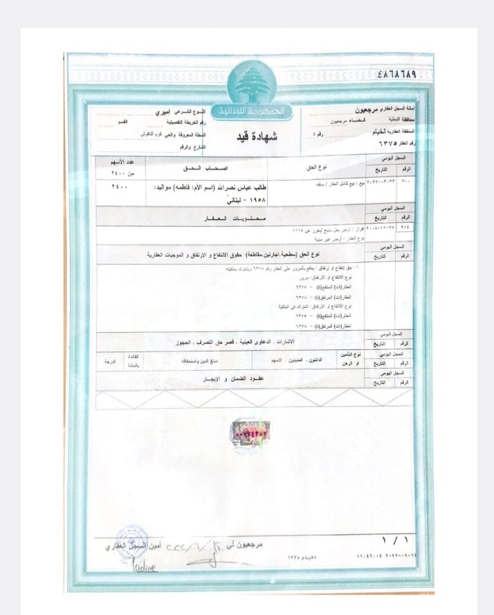 عقار رقمه: 6375، منطقة الخيام العقارية