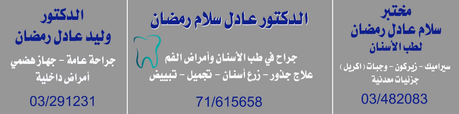 ٢) عيادة الدكتور عادل سلام رمضان: جراح في طب الأسنان وأمراض الفم - علاج جذور -زرع أسنان - تجميّل - تبييض (71615658)