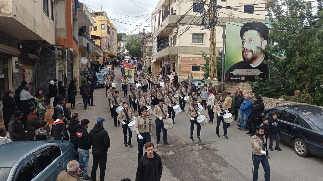 وفي ساحة البلدة اقسمت مراسم تكريمية للشهيد حرب حيث عزفت الفرقة الموسيقية لكشافة الامام المهدي لحن الشهادة وادت ثلة من المجاهدين قسم الولاء الامين العام لحزب الله السيد حسن نصرالله
