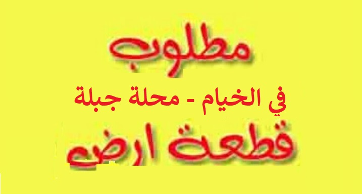 مطلوب قطعة أرض في الخيام بمحلة جبلة، بحدود الدونم، وأن تصلح للبناء.