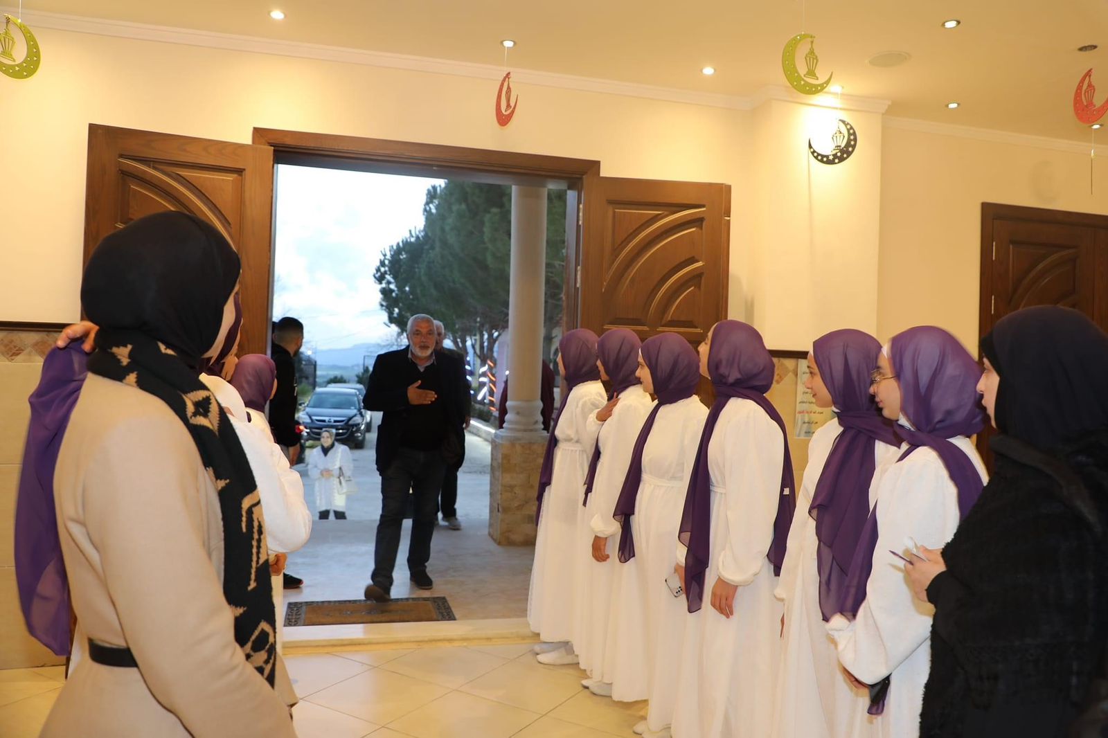 وكان في استقبال الضيوف الأعزاء على مدخل القاعة كوكبة ملائكية من أطفال المبرة وسط منشودات الترحيب وعبارات التأهيل بالزوار الكرام. ثم ولّجوا الى داخل "قاعة الهنا" تلك القاعة التي شُيدت على اسم المرحومة قرينة الحاج الفاضل، حيث رحّب بضيوف تلك الأمسية، مضيفهم الكريم "الحاج أبو حسن"، والسيدة قرينته الحاجة لينا زعرور، ومدير ثانوية عيسى بن مريم (ع) ومبرة النبي إبراهيم (ع) المربي الحاج "أحمد عطية"، والسيدة قرينته المربية أمل أسعد، ومن ثم أخذوا أماكنهم في وسط القاعة، حيث تفقدهم شخصياً الحاج الفاضل متأهلا بهم، مطمئناً عليهم، وشاكراً لهم تلبية دعوته النبيلة في هذا الشهر الفضيل.