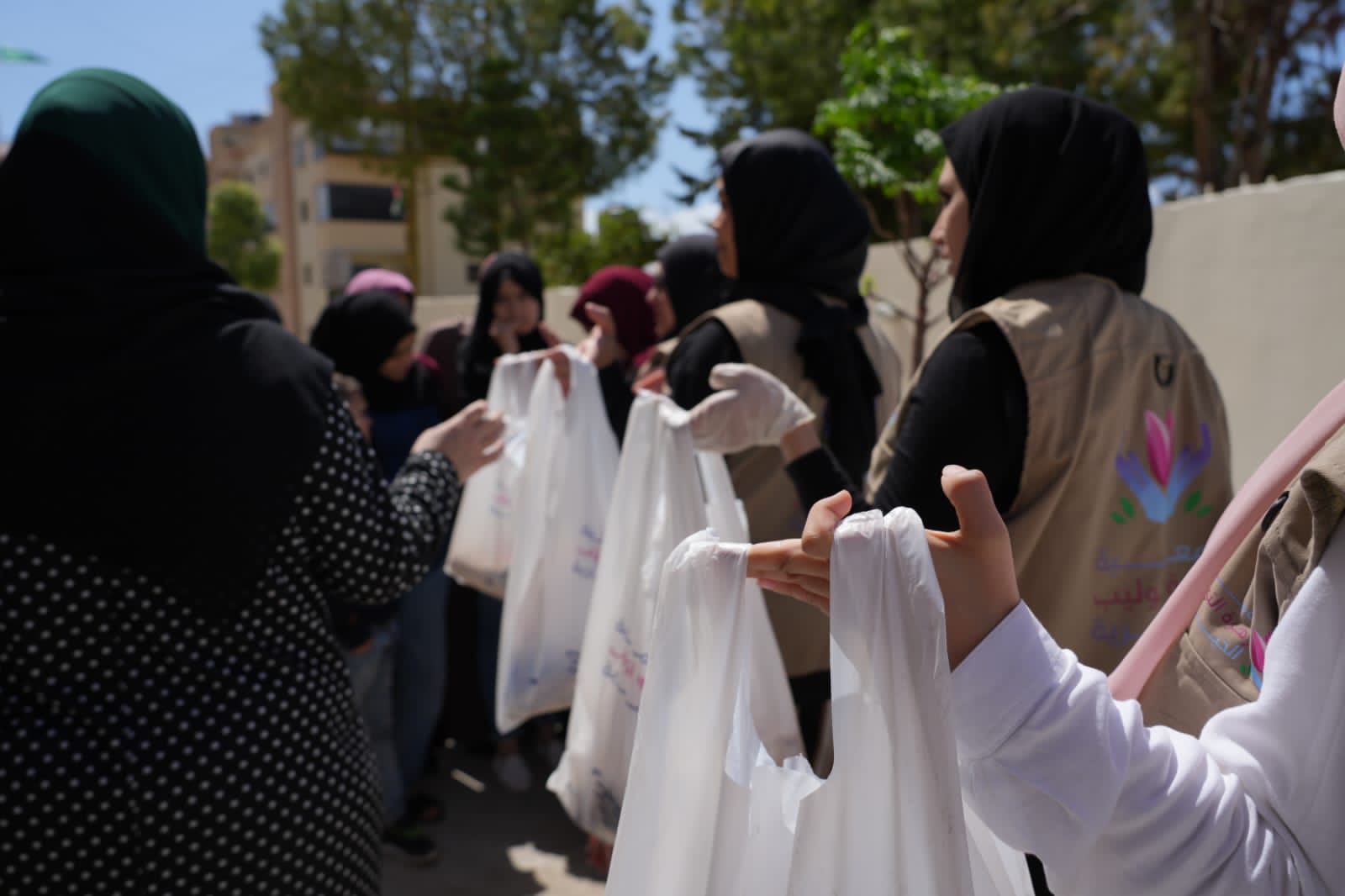 كما تم توزيع الحاجيات الأساسية لمائدة رمضان من جميع أنواع الخضار، وذلك تحت شعار(حصاد رمضان).