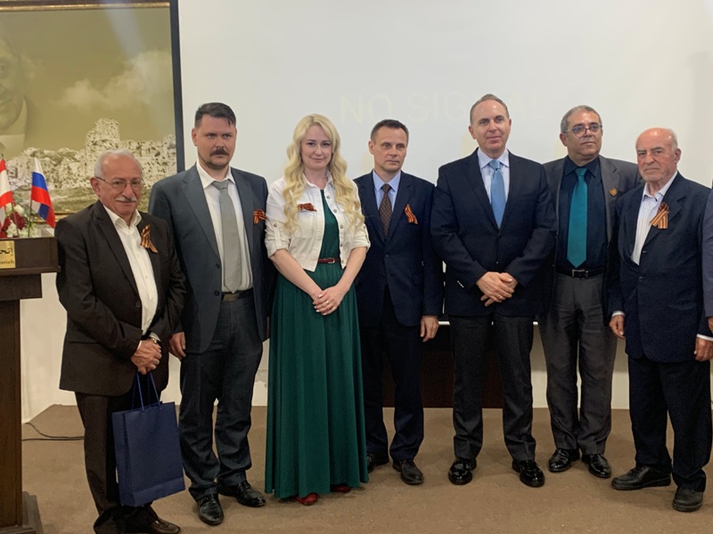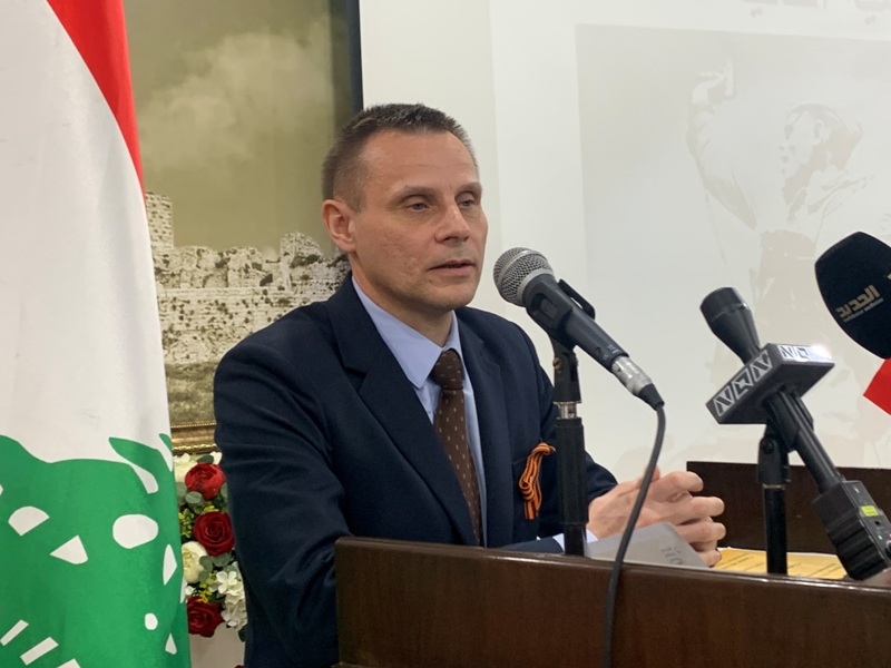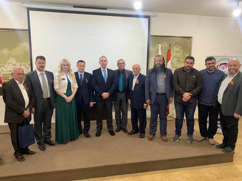 بعد النشيدين اللبناني والروسي ، ألقى رئيس اتحاد رجال الاعمال اللبناني – الروسي اسعد ضيا كلمة ترحيبية ، ثم كلمة لرئيس المركز الثقافي الروسي في بيروت الكسندر سوروكين، الذي اشار الى "الانتصار التاريخي الذي حققته بلاده على الفاشية في الحرب العالمية الثانية ، حيث كان شهر ايار شهر الانتصار الذي نحتفل فيه كل عام. "