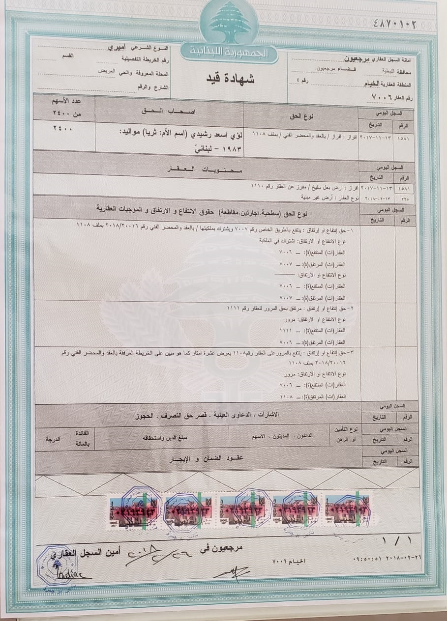 الشجيرات يزيد عمرها على العشر سنوات. في منطقة هادئة، نطيفة بيئياً، كاشفة لا تحجب، مطلة على جديدة مرجعيون، ولها مستقبل .