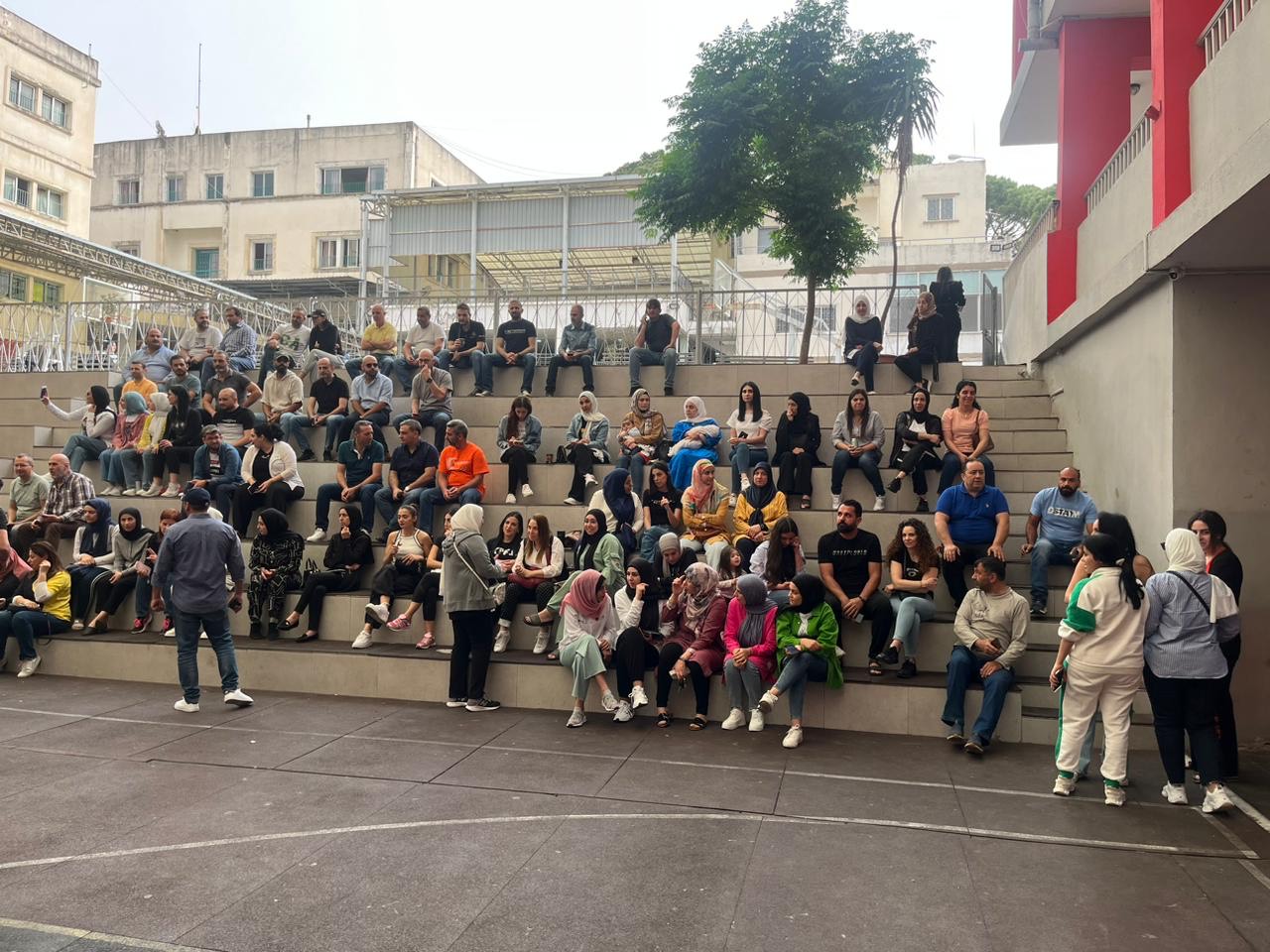 وتجمع الاهالي في ملعب المدرسة وتخلل وقفتهم حملة توقيع على إعتراض يقدّم إلى وزارة التّربية (مصلحة التّعليم الخاص).تمهيدا لإتّخاذ الإجراءات القانونيّة المناسبة ضد قرار رفع الاقساط