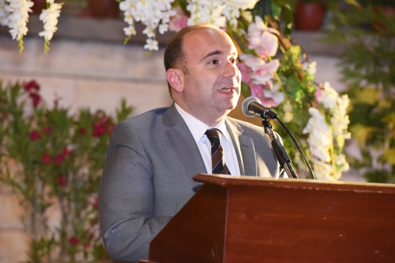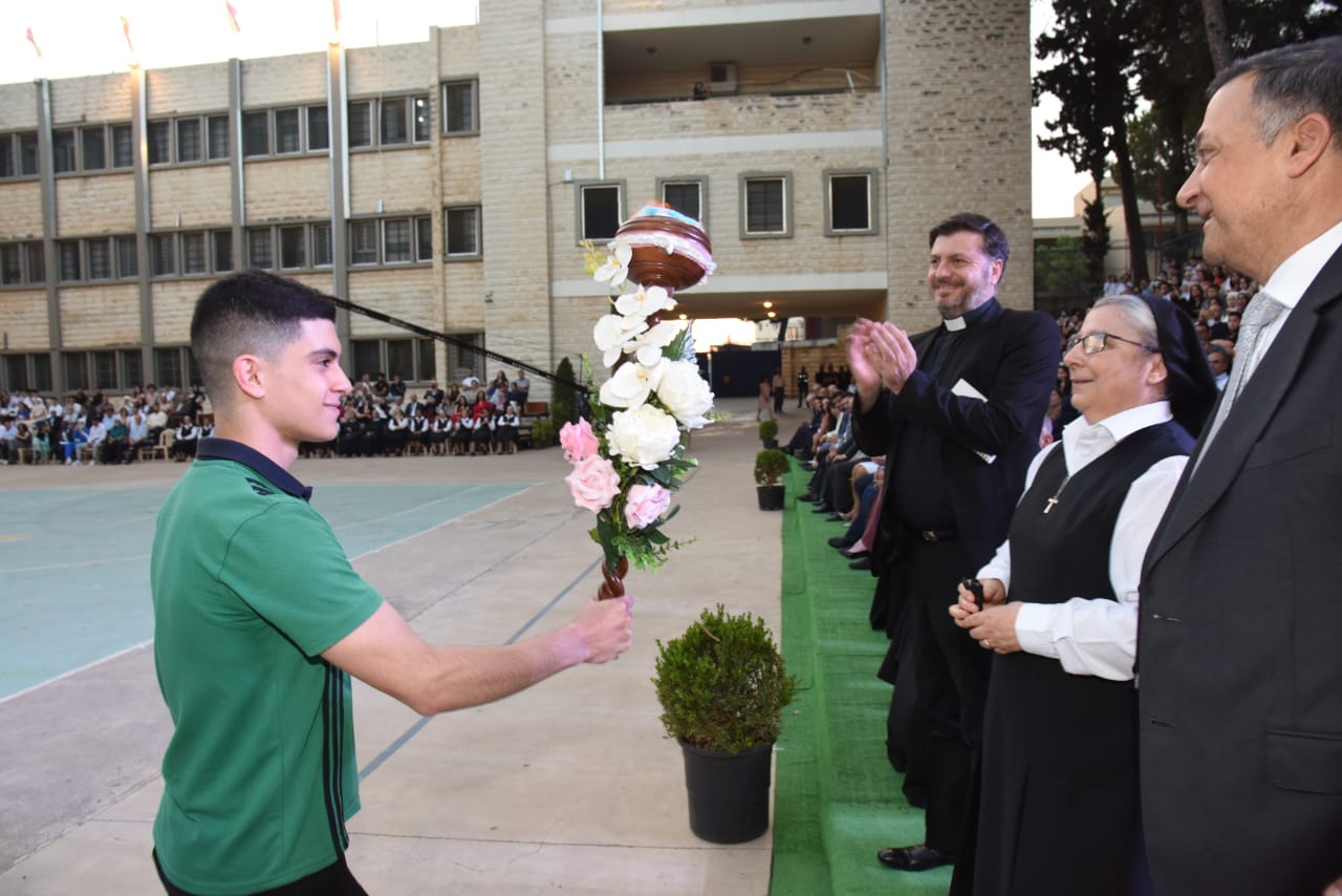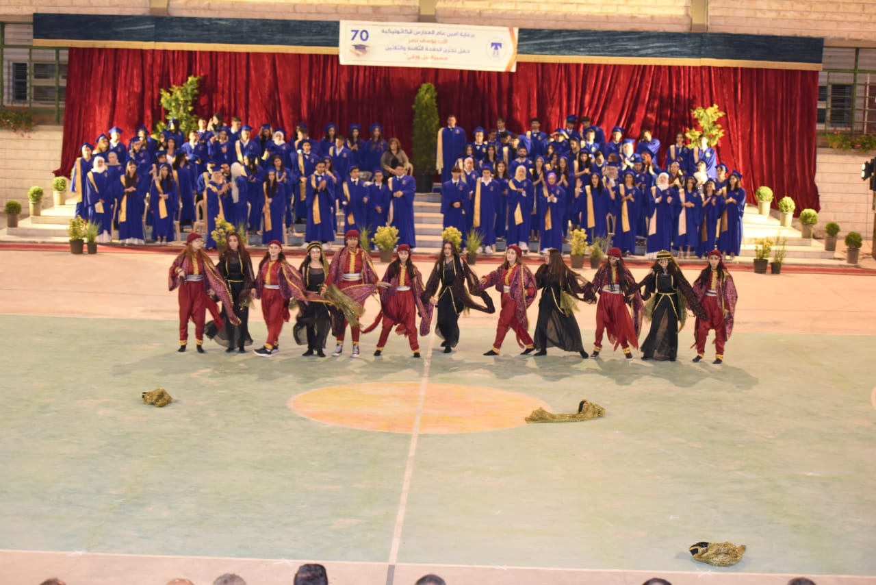 فأهلاً وسهلاً بصاحب الرعاية أمين عام المدارس الكاثوليكية الأب المخلصيّ يوسف نصر، وأهلاً بالحضور الكريم في عيد مدرستنا السبعين وهي تخرّج فوجاً جديداً من طلابها يحملون شعار : " مسيرة نبل ورقي "..