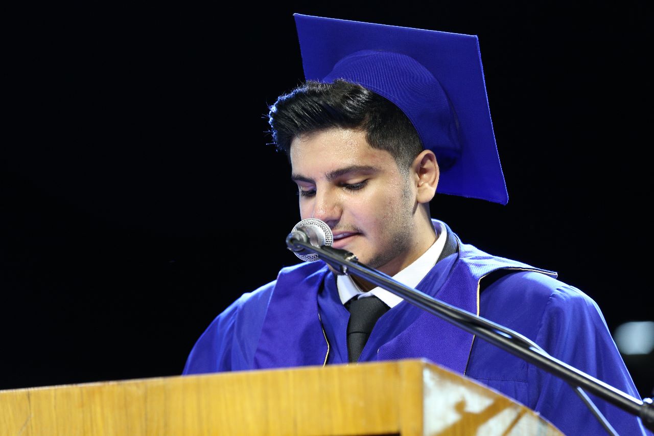 أيها الخريجون، بعزم وثقة، وبشخصية قوية لائقة، بادروا، انطلقوا في الحياة، ولا تتّكلوا إلا على عزائمكم".