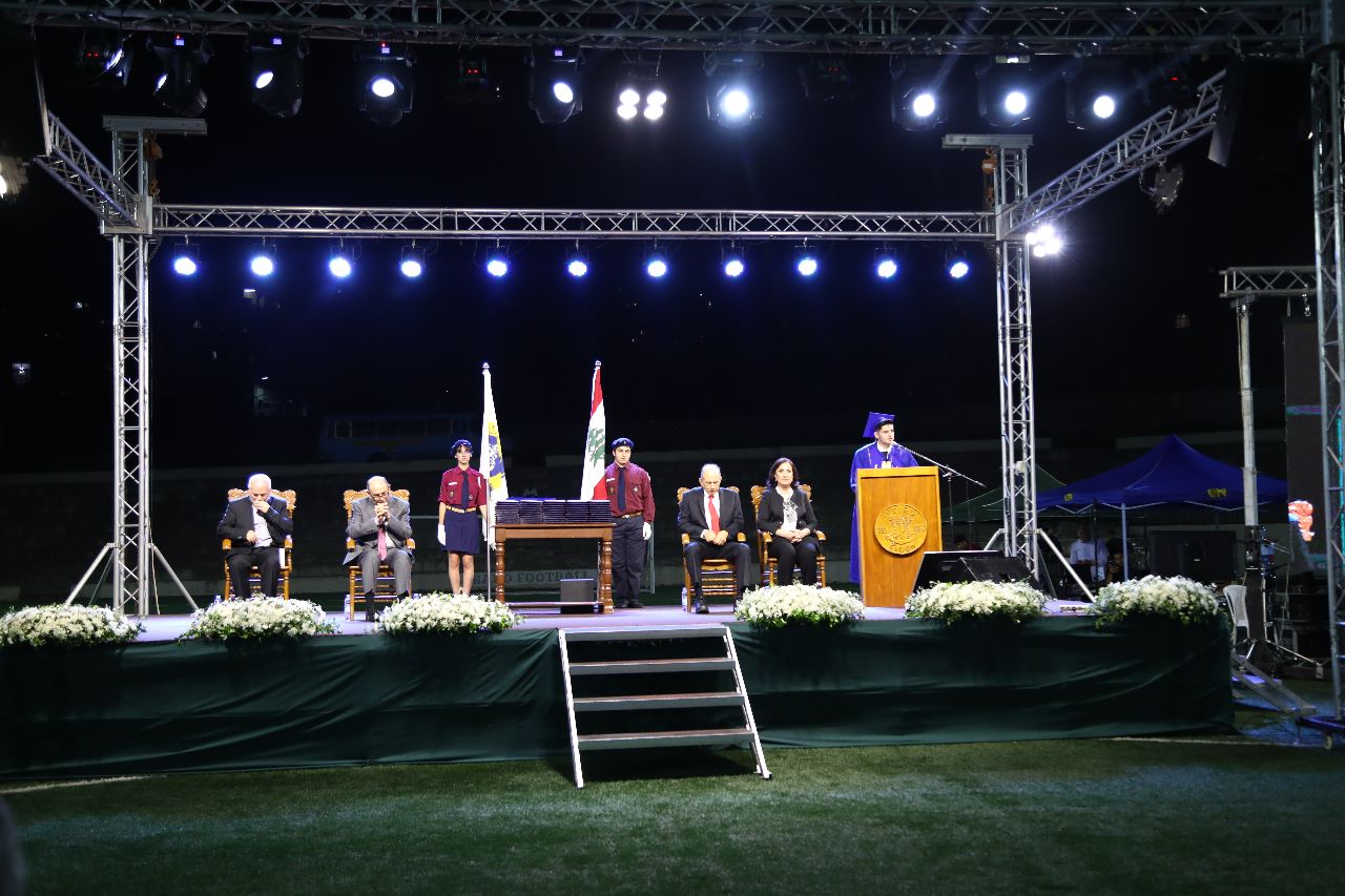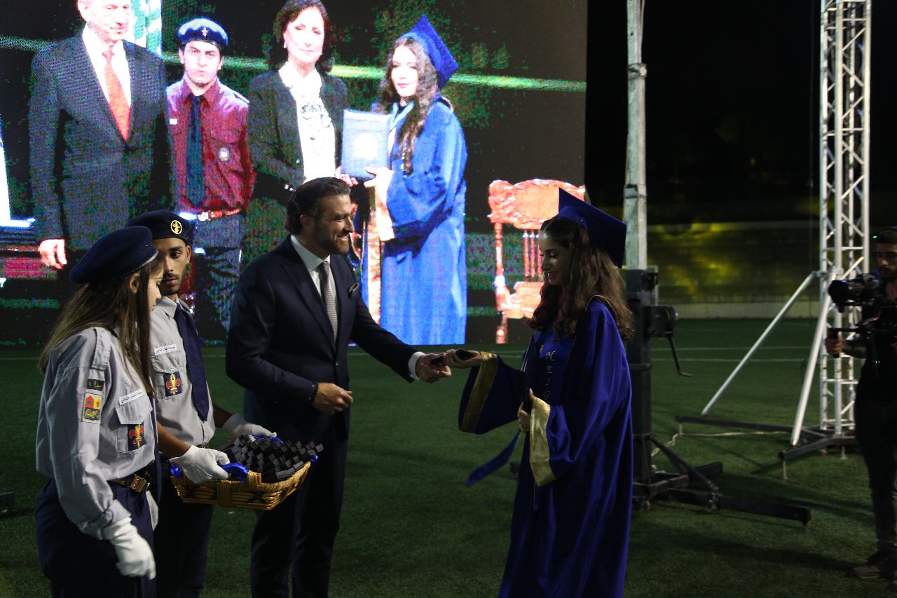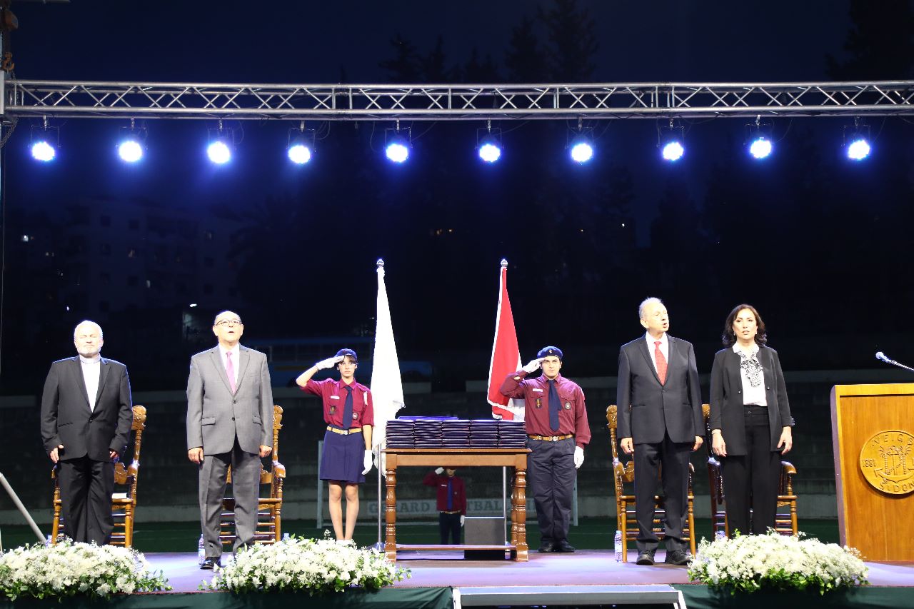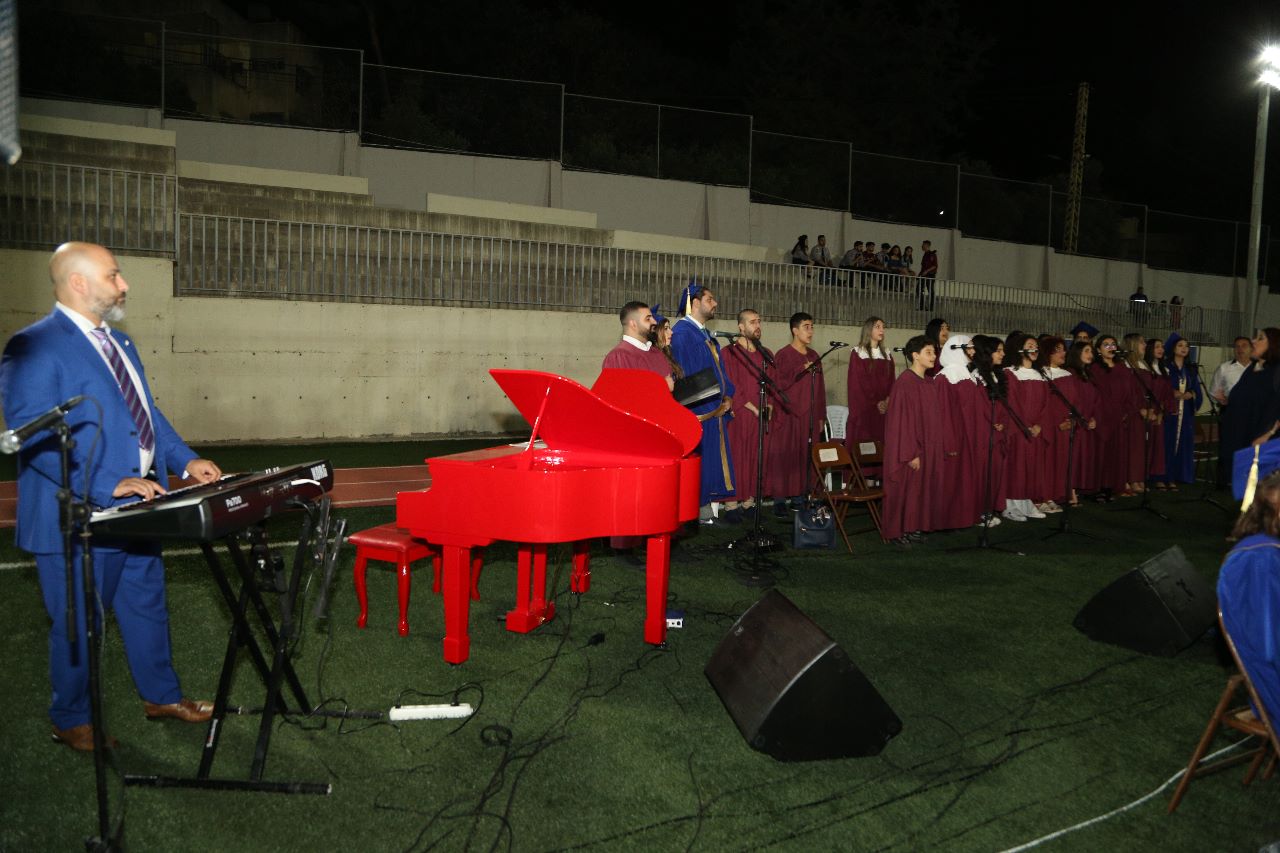 بدأ الحفل بدخول موكب الخريجين على وقع الموسيقى، ثم النشيد الوطني اللبناني ونشيد المدرسة، ثم قدم القس مخايل سبيت صلاة بارك فيها الخريجين والهيئتين الإدارية والتعليمية.