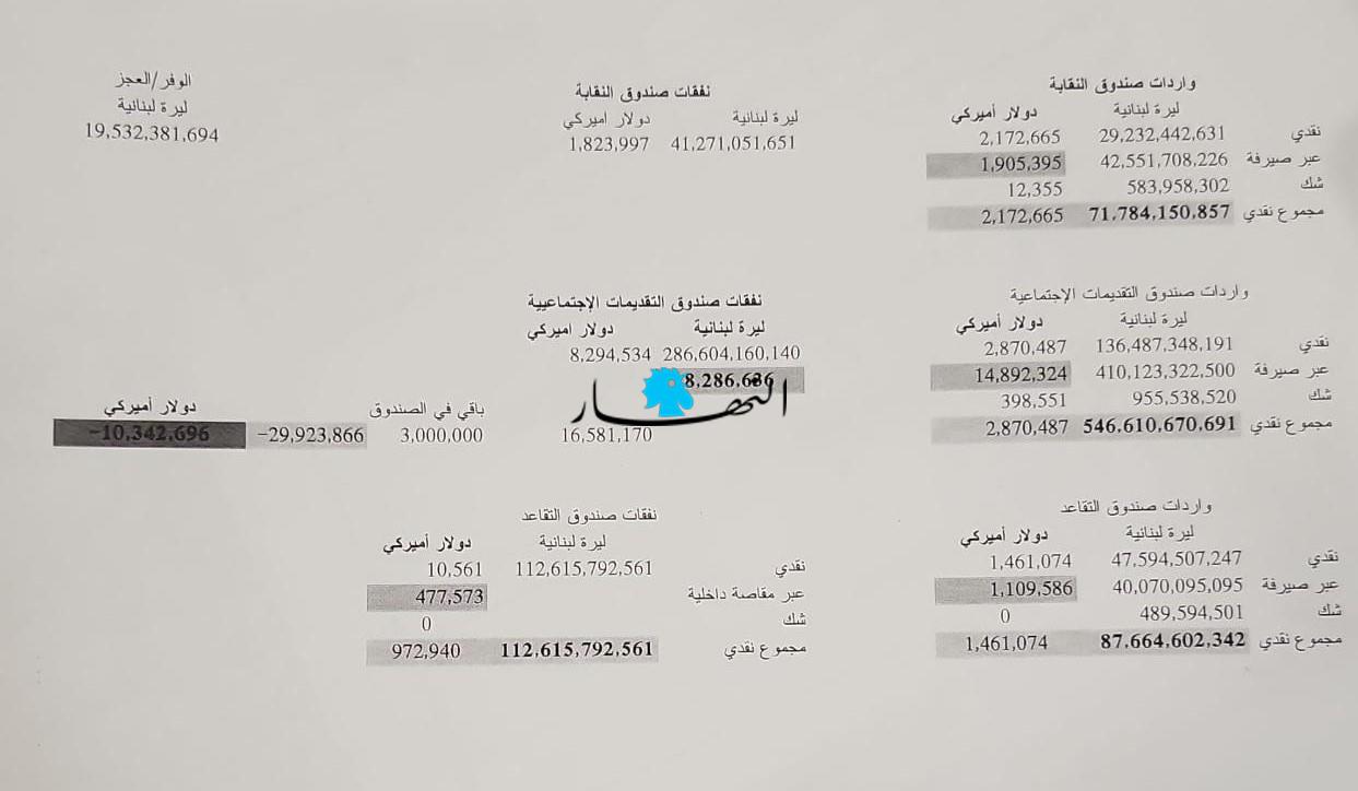 أما في صندوق التقديمات الاجتماعية، محور تحقيقنا، فتُظهر الجداول وجود نحو مليار ليرة في الصندوق، و117 ألف دولار "فريش".