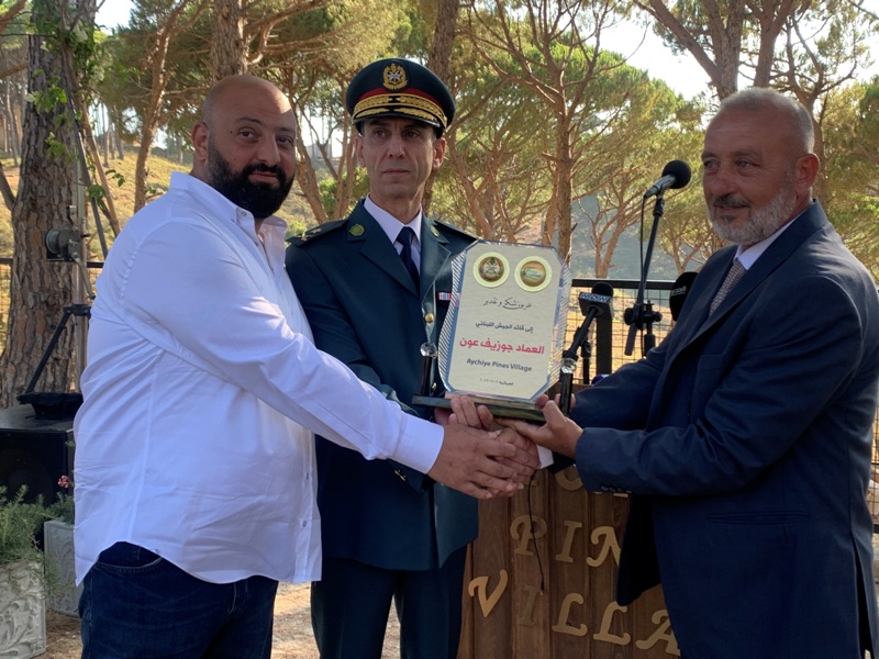 يتضمن لقاؤنا اليوم لافتتاح منتزه Aychieh Pines Village مجموعة عناوين أولها علاقة الاحترام والمودة والتعاون التي تجمع الجيش باللبنانيين في مختلف المناطق، ولا سيما بلدة العيشية المعروفة بانتمائها الوطني الثابت ودعمها الدائم للمؤسسة العسكرية. ومن ناحية أخرى، يعد هذا الحفل مبادرة إنمائية سياحية بالغة الأهمية، تجسد إرادة اللبنانيين وصمودهم وإصرارهم على الاستثمار في وطنهم، إيمانا بقيامة لبنان الجميل رغم الظروف الاقتصادية والاجتماعية الصعبة، بفضل التضامن والتكاتف بين أفراد المجتمع ومكوناته.