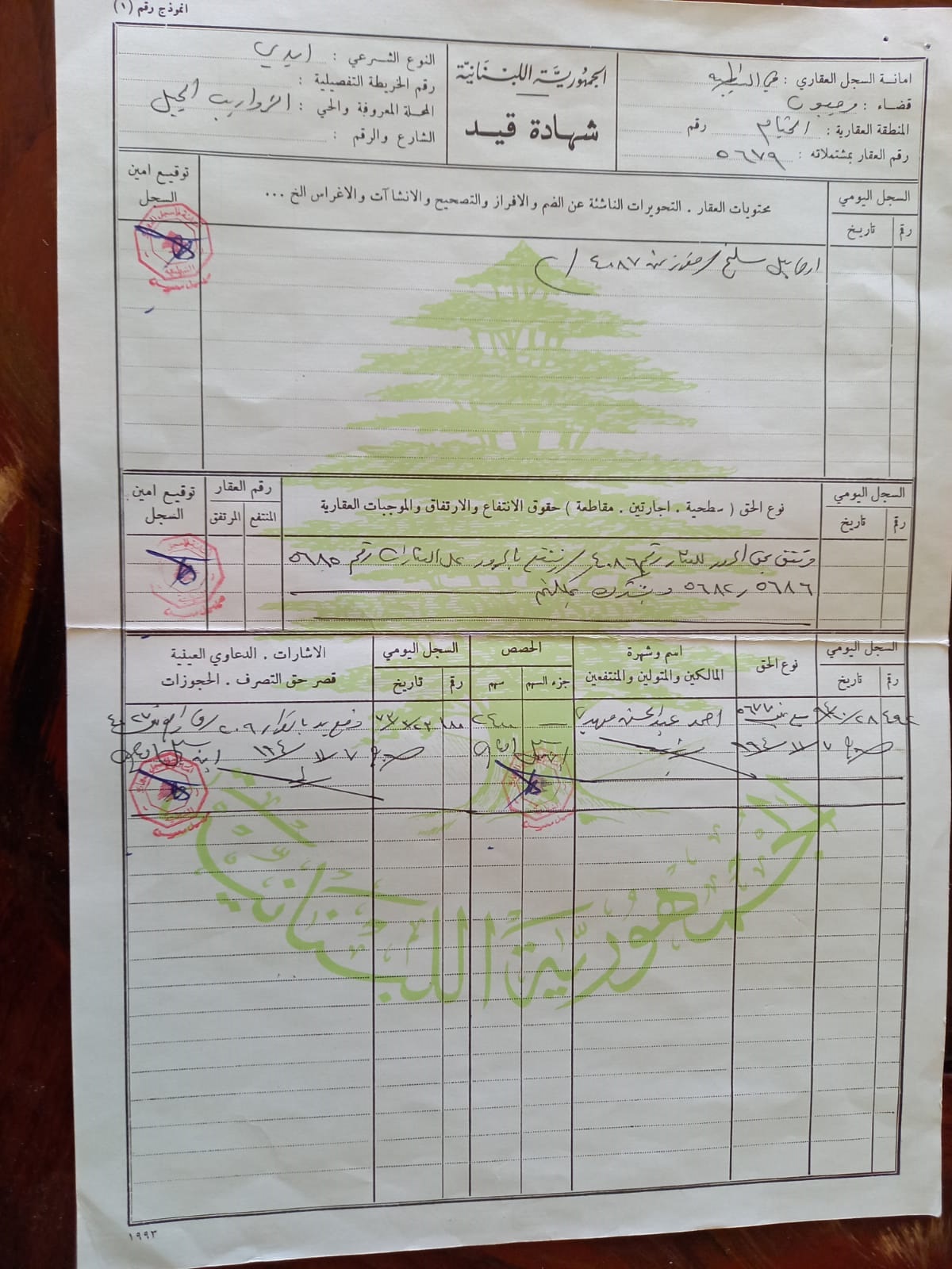 معروض للبيع في الخيام قطعة ارض مساحتها 1224 متر مربع تقريباً.