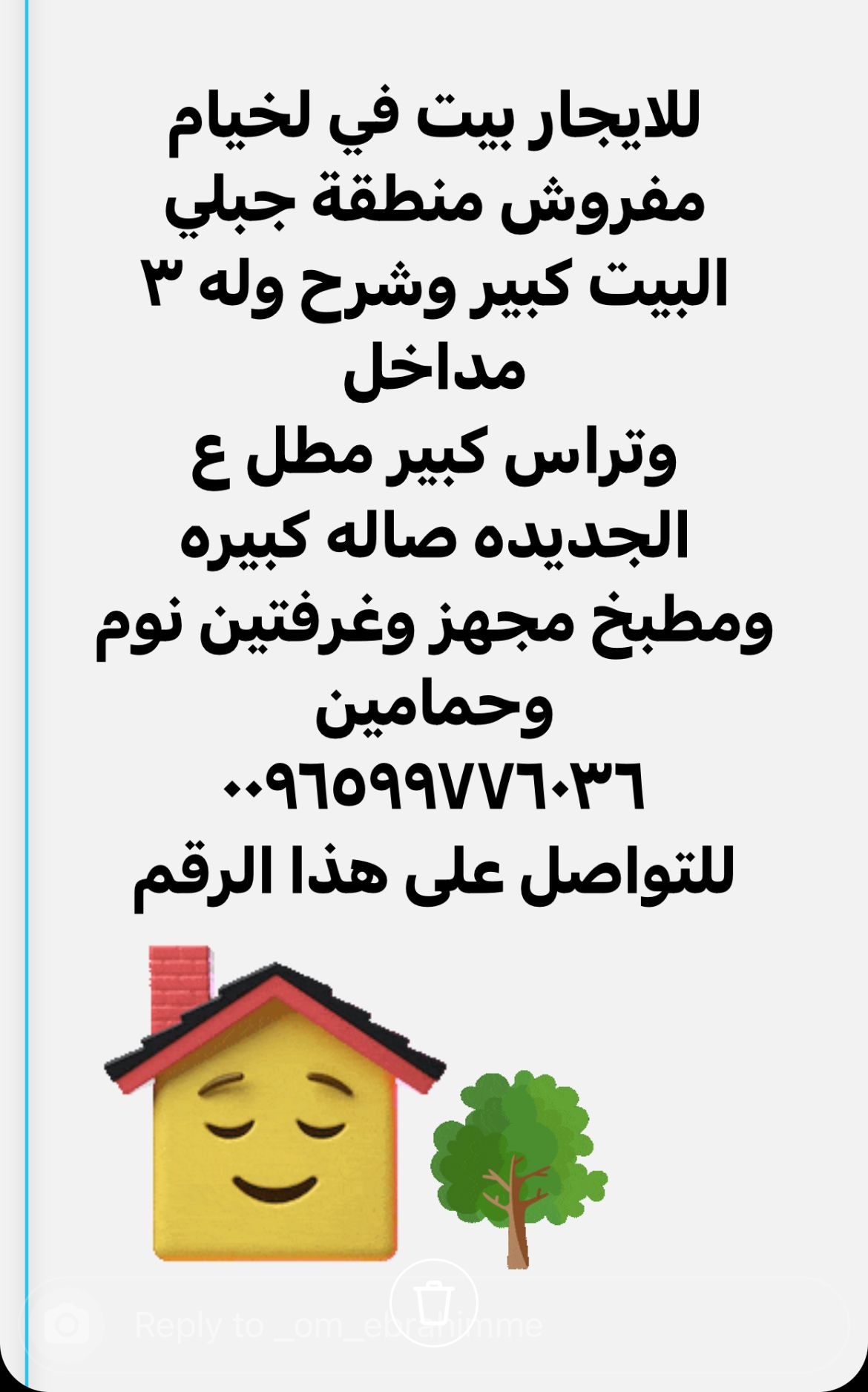 معروض للايجار في الخيام بمحلة جبلي، بيت مفروش بالكامل ذات إطلالة رائعة علي جديدة مرجعيون.